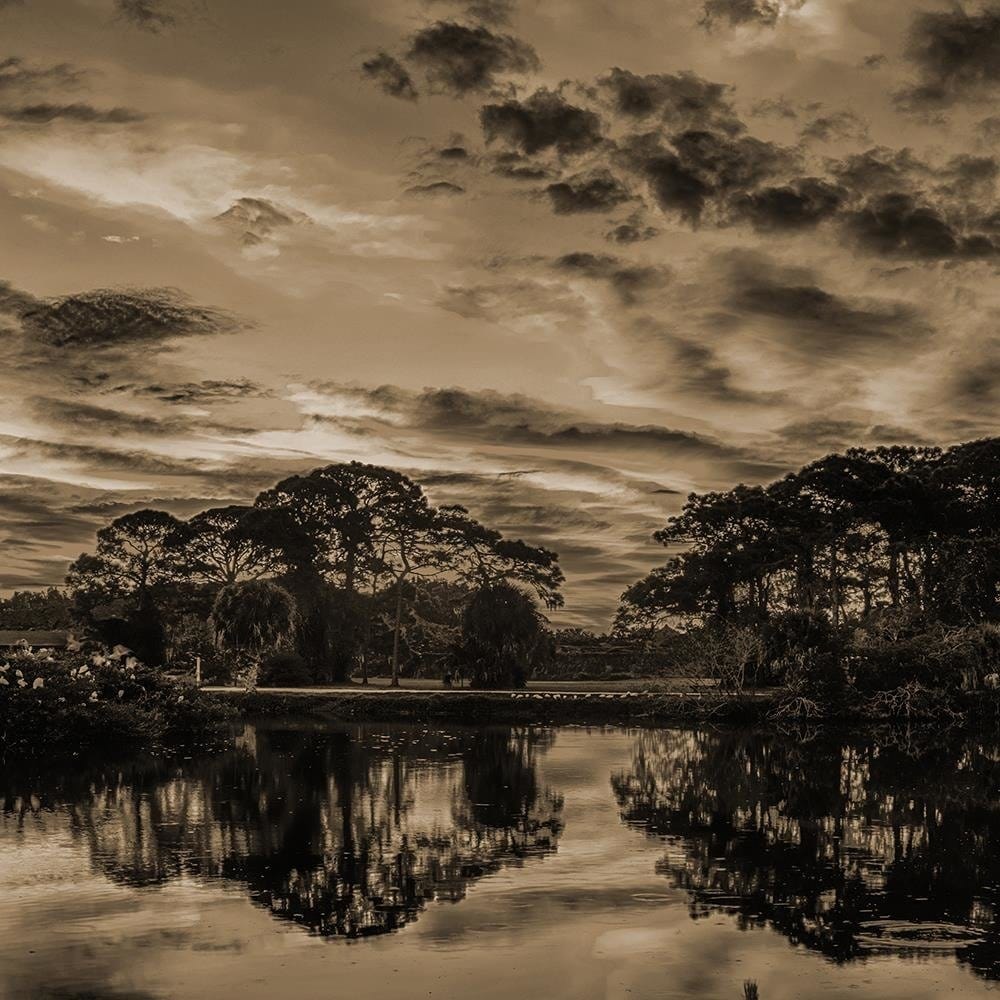 Glezna brūnā rāmī - Clouds Over The Lake 1
