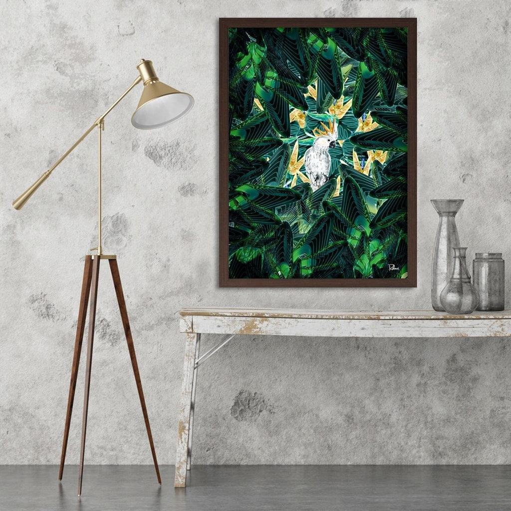 Glezna brūnā rāmī - Cockatoo Image Tropical Green
