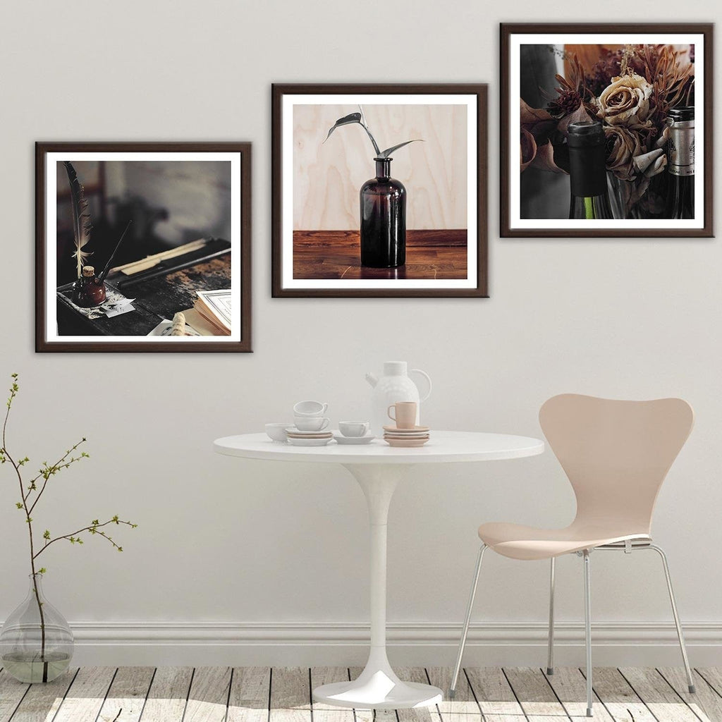 Glezna brūnā rāmī - Dry Flowers And Bottles Of Wine