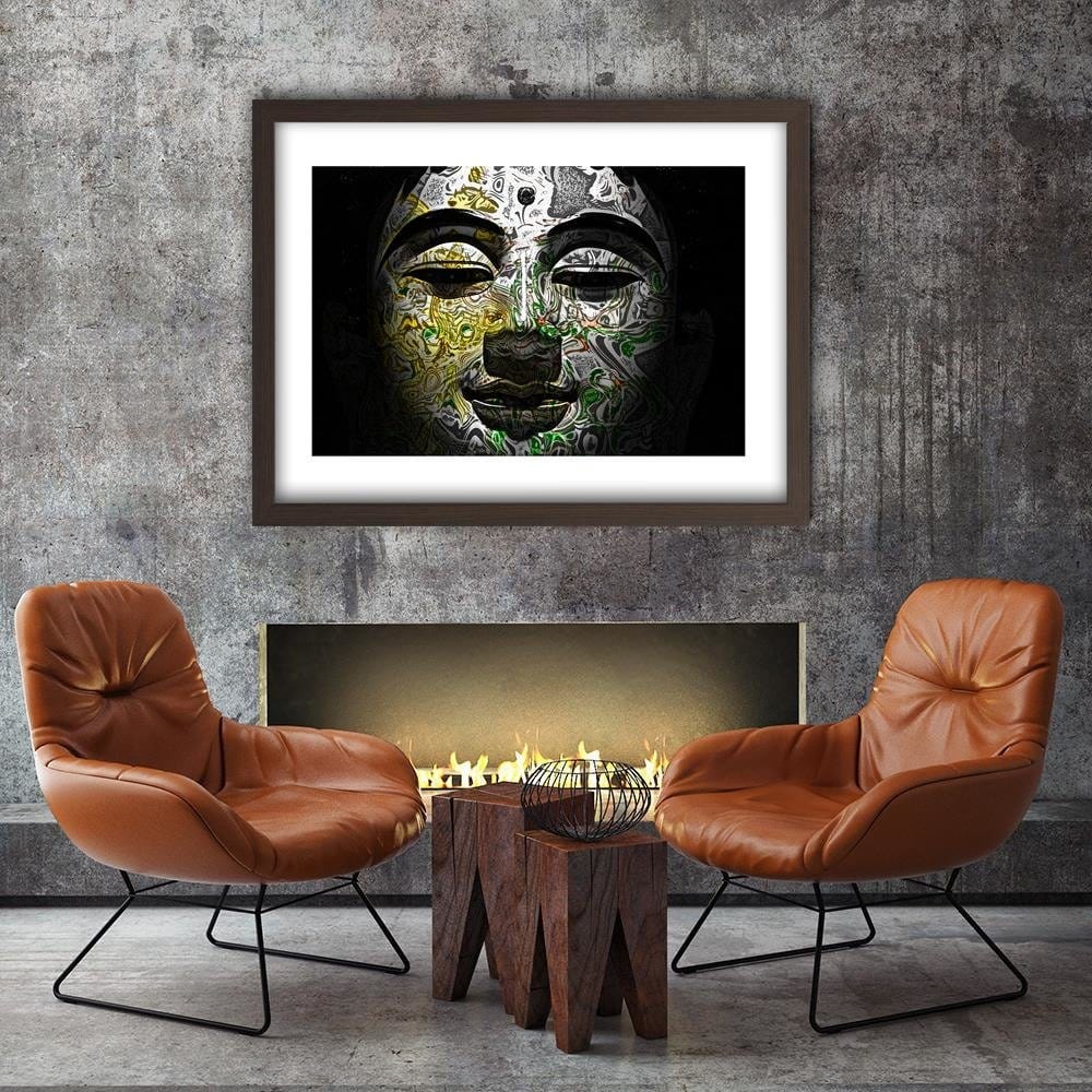 Glezna brūnā rāmī - Face Of Buddha In Patterns