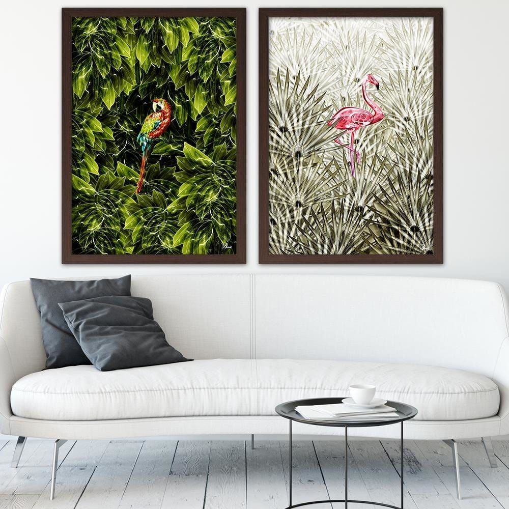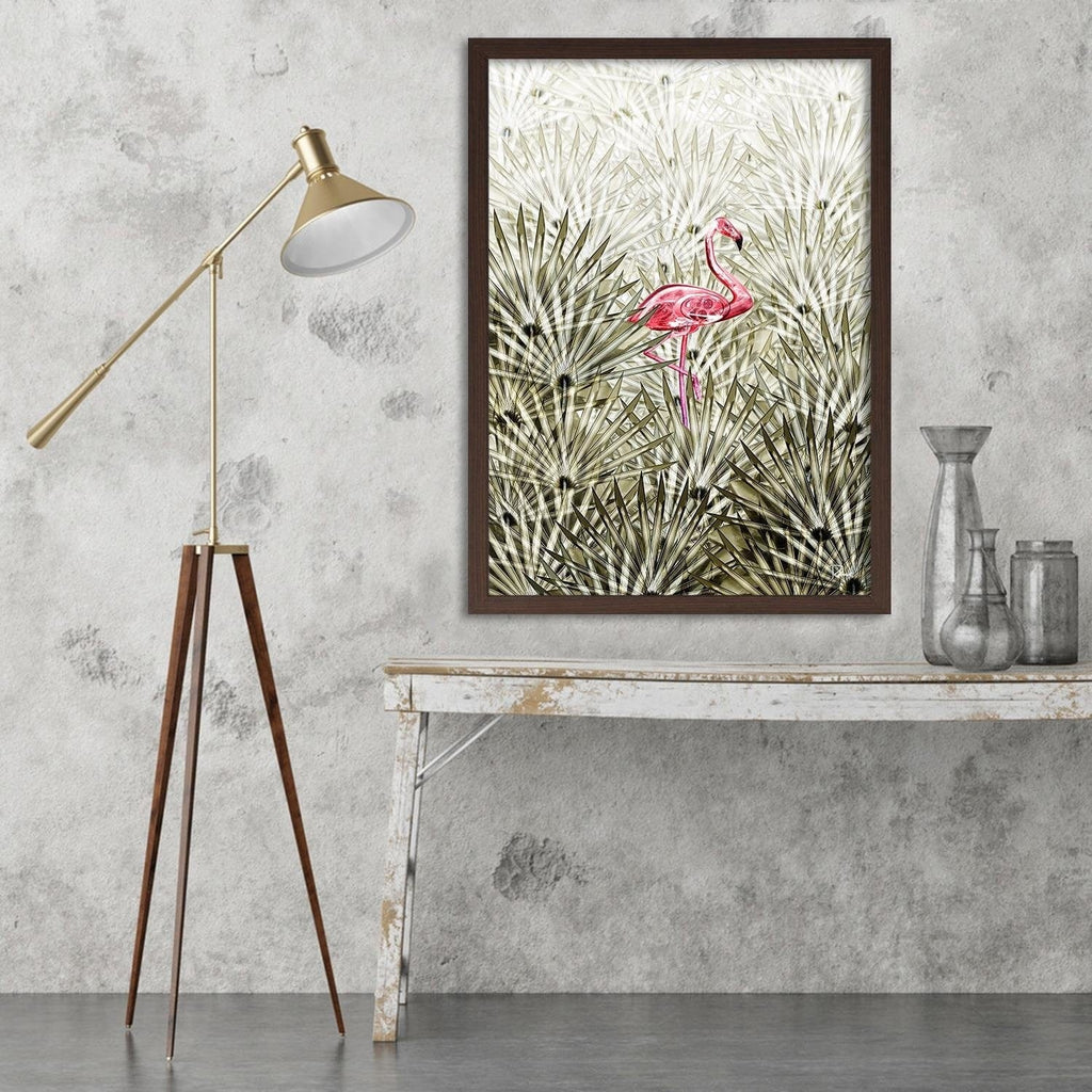 Glezna brūnā rāmī - Flamingo Digital Pink