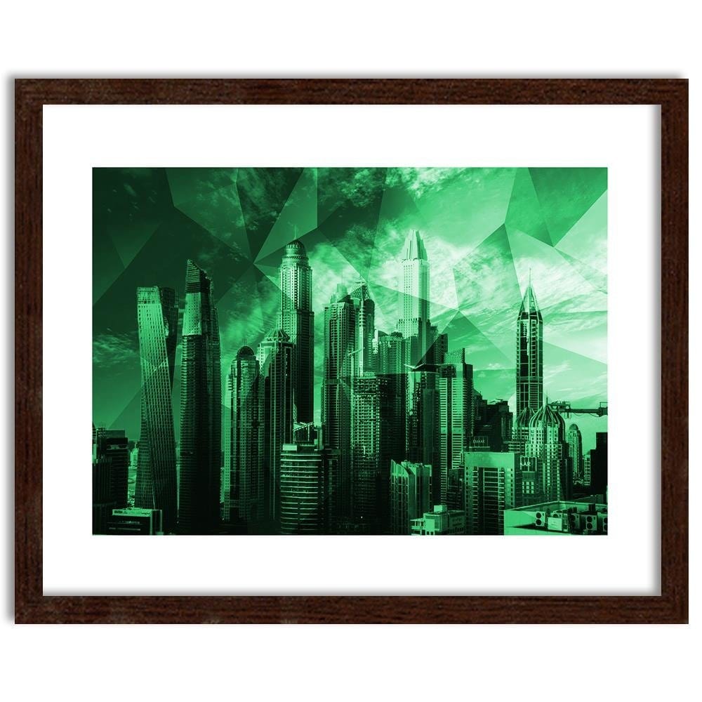 Glezna brūnā rāmī - Geometric Green City 3