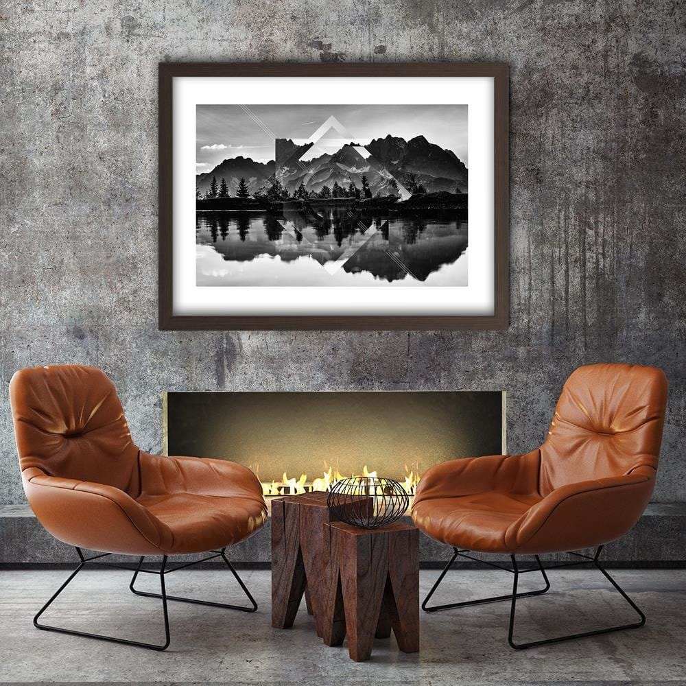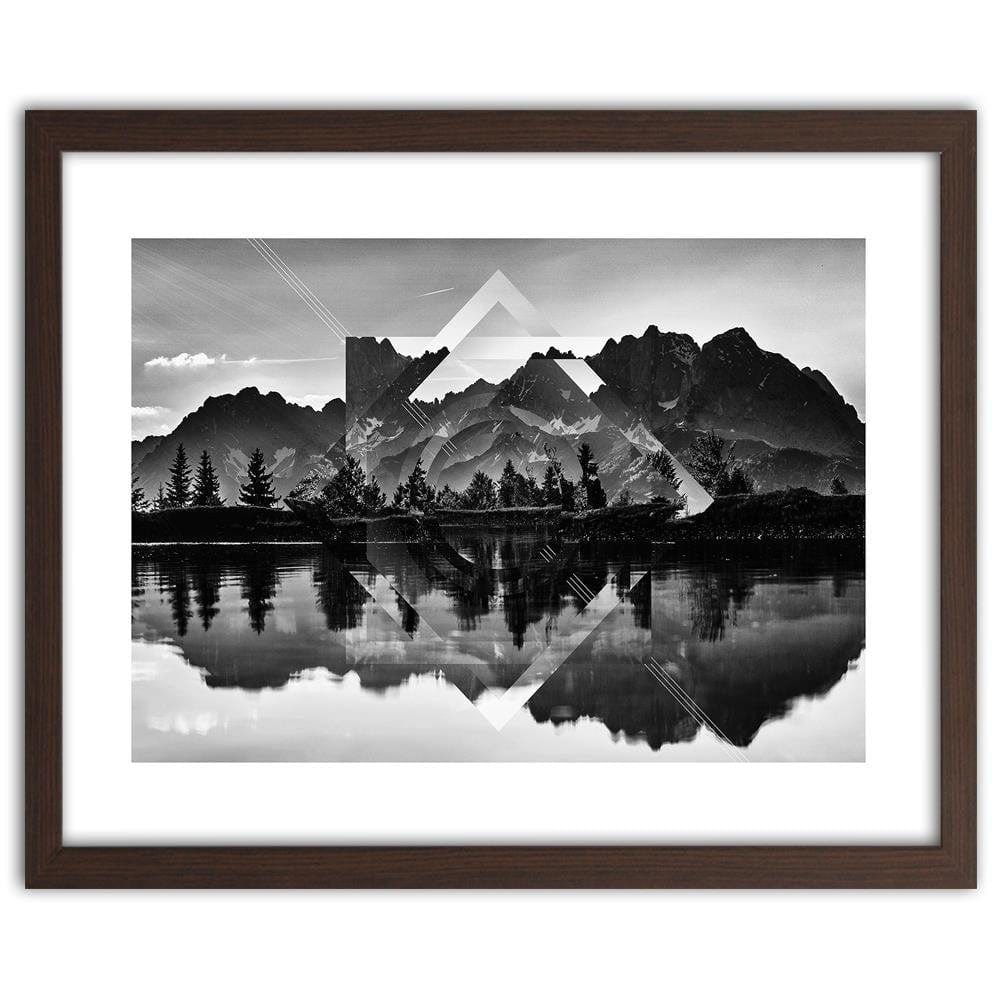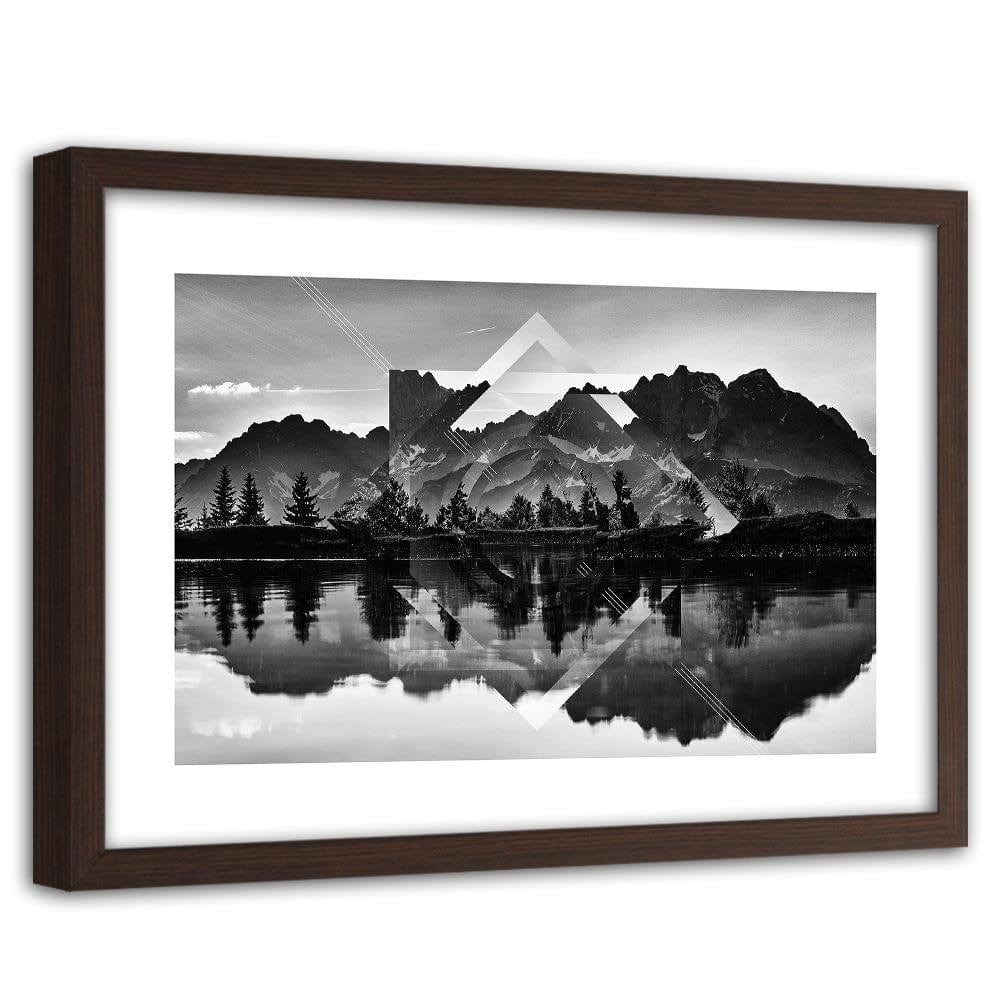 Glezna brūnā rāmī - Geometric Landscape With Figures Of 3