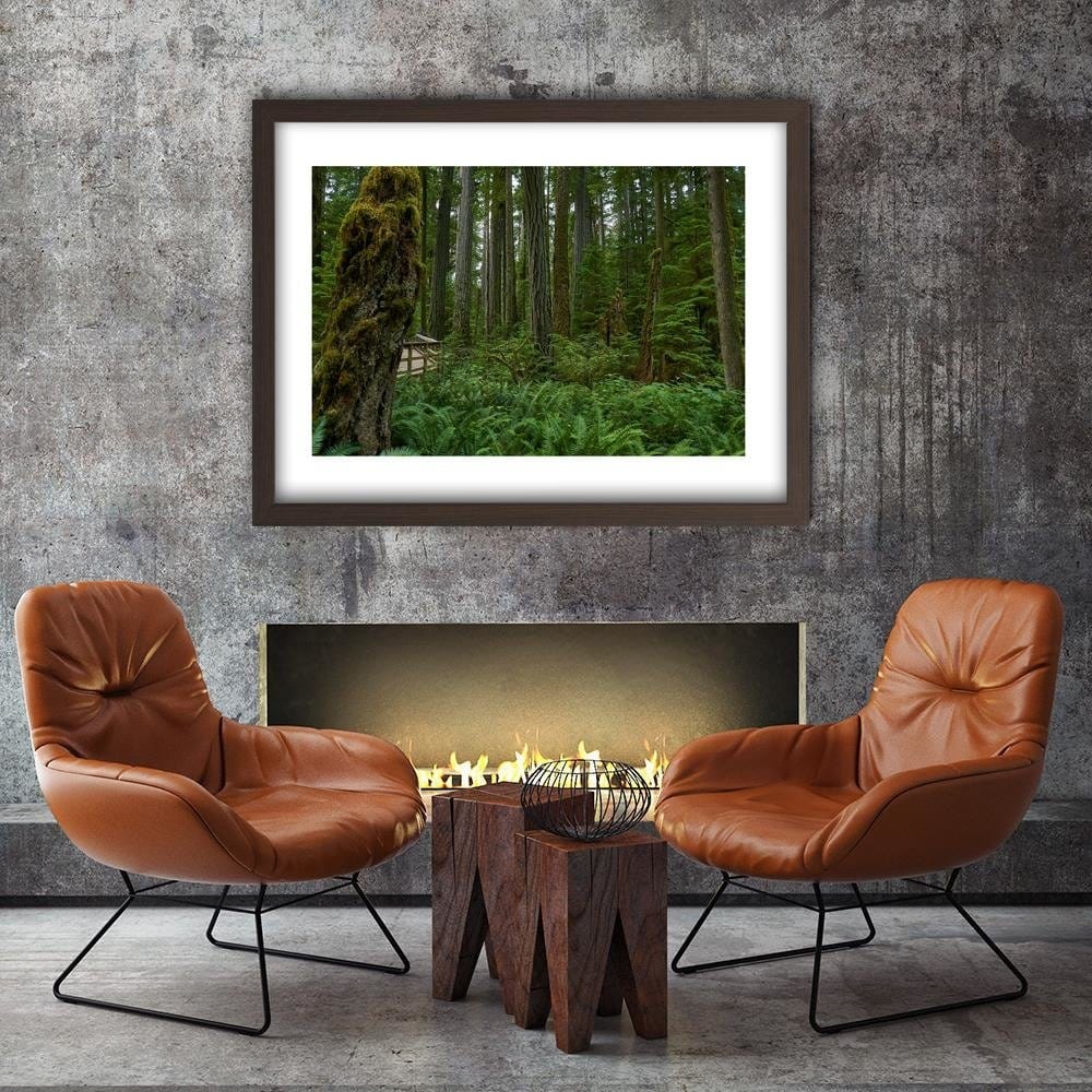 Glezna brūnā rāmī - Green Ferns In The Forest