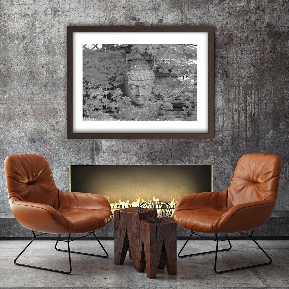 Glezna brūnā rāmī - Head Of Buddha Among The Leaves