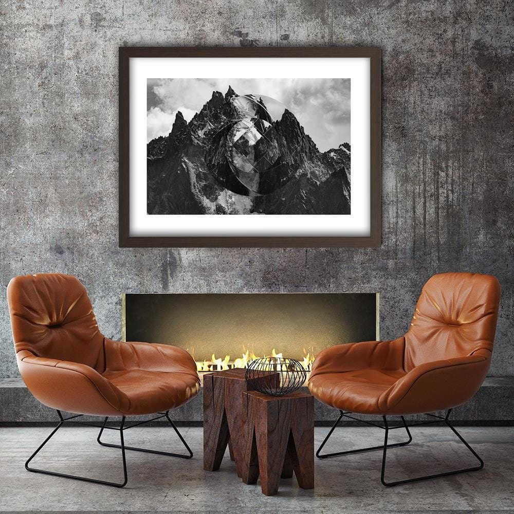 Glezna brūnā rāmī - High Mountains With Geometric Figure 1