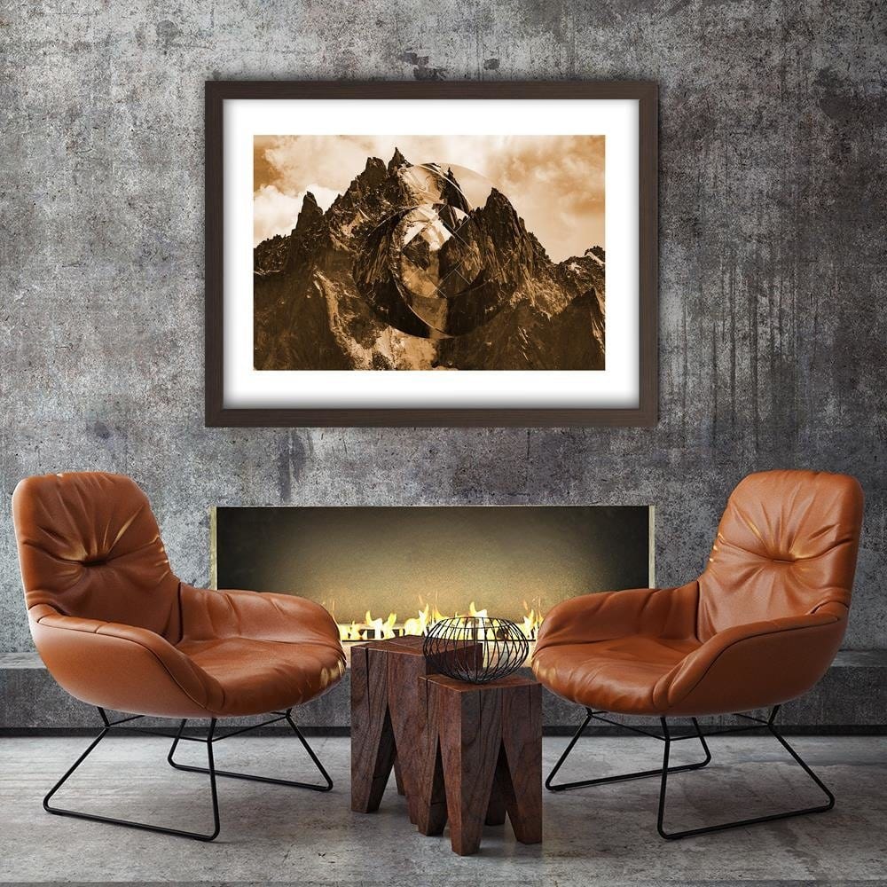Glezna brūnā rāmī - High Mountains With Geometric Figure 2