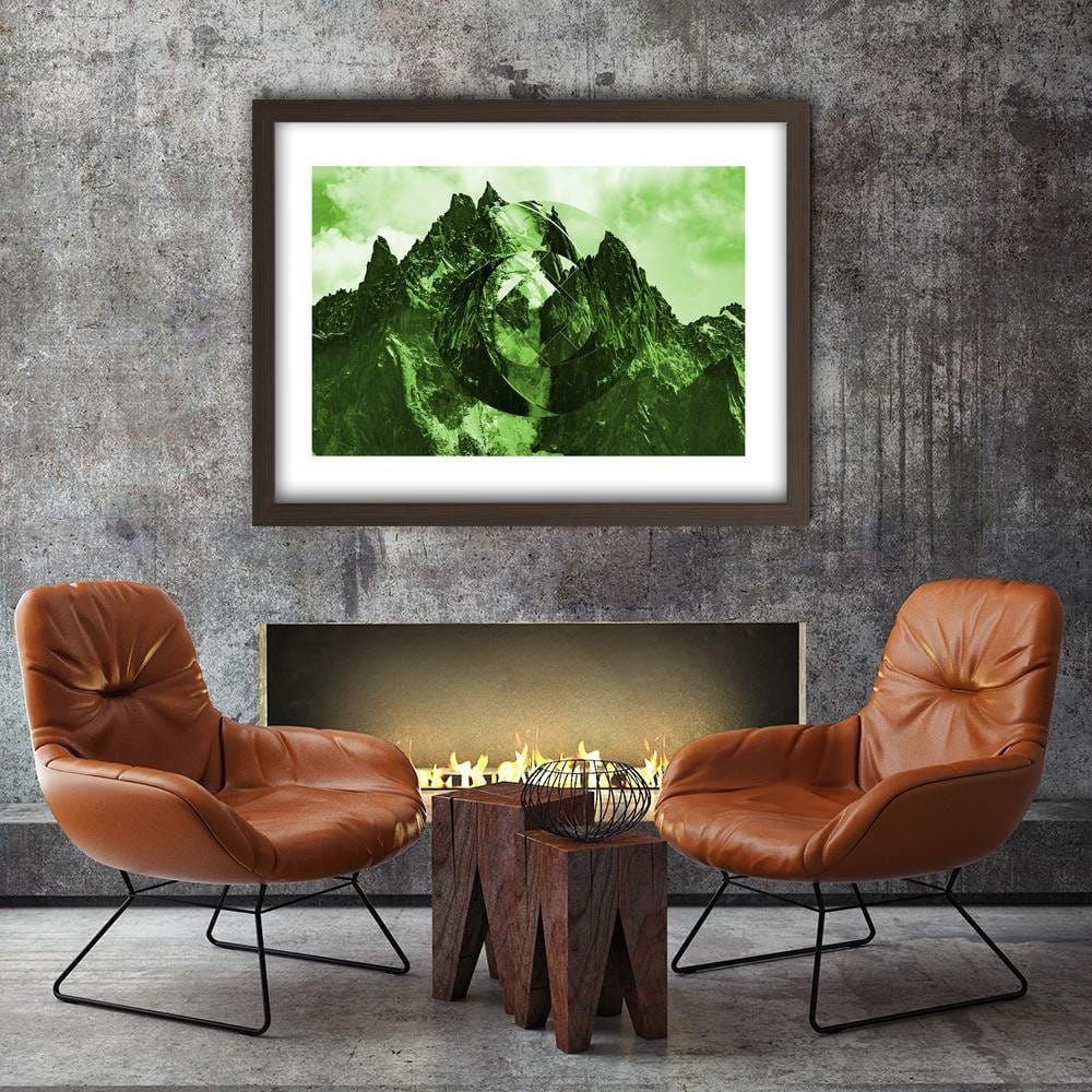 Glezna brūnā rāmī - High Mountains With Geometric Figure 3
