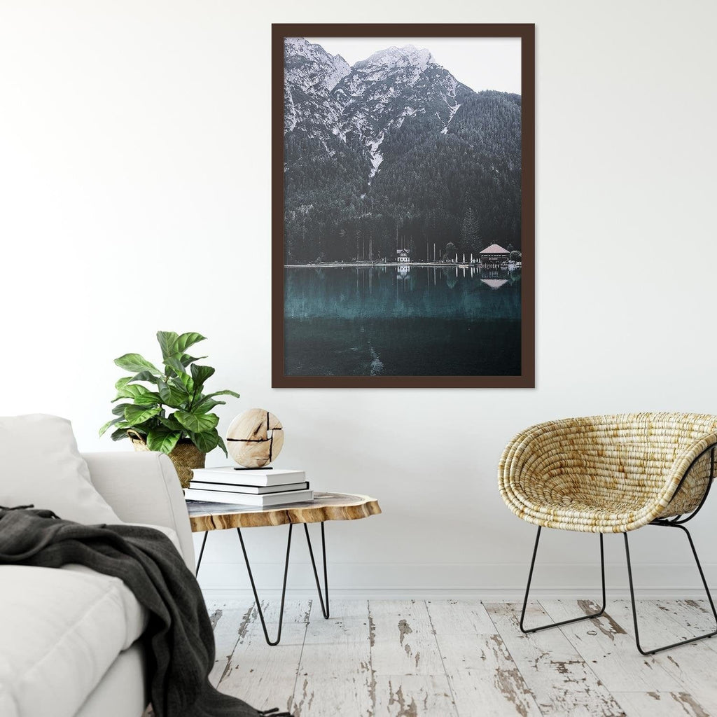 Glezna brūnā rāmī - Houses The Mountain Peak