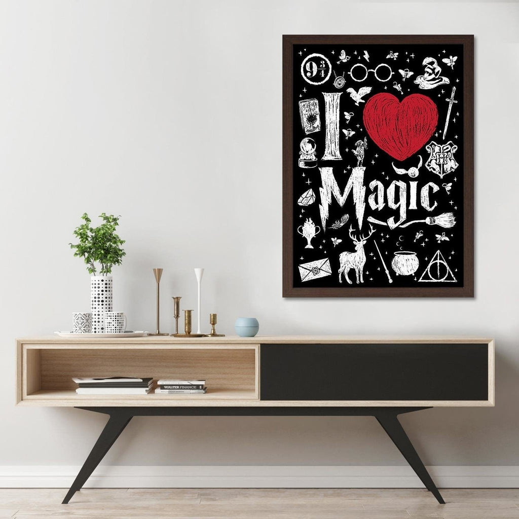 Glezna brūnā rāmī - I Love Magic Image Black And White