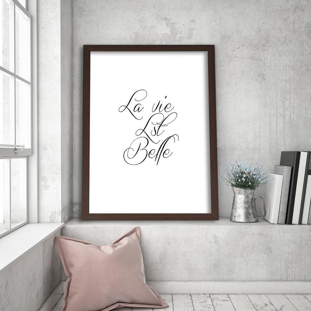 Glezna brūnā rāmī - Inscription Life Is Beautiful