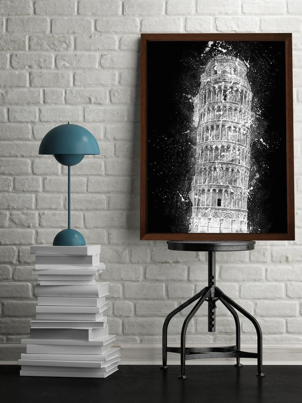Glezna brūnā rāmī - Leaning Tower Of Pisa At Night