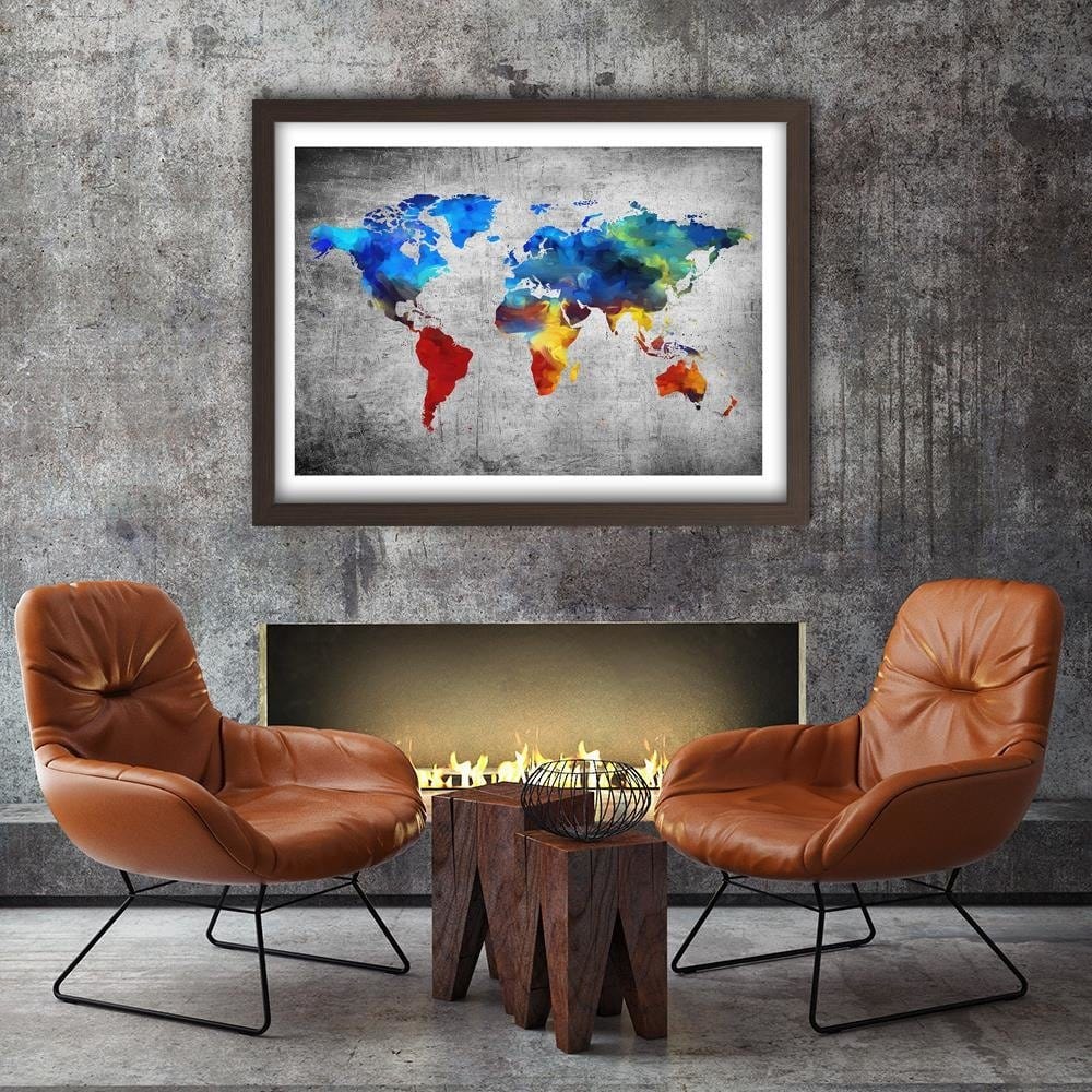 Glezna brūnā rāmī - Map Of The World Painted On The Concrete