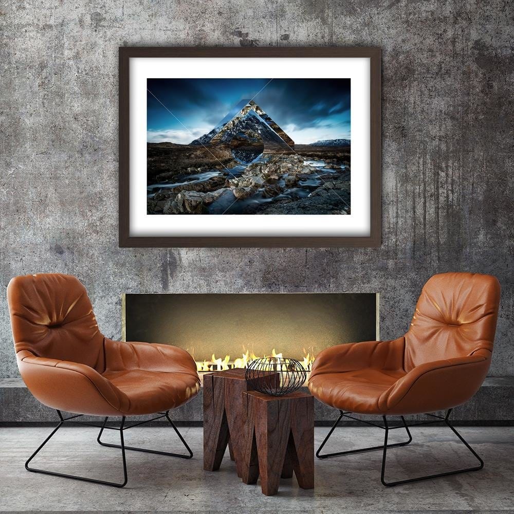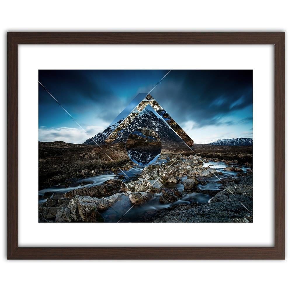 Glezna brūnā rāmī - Mountain Landscape With Geometric Figures 1