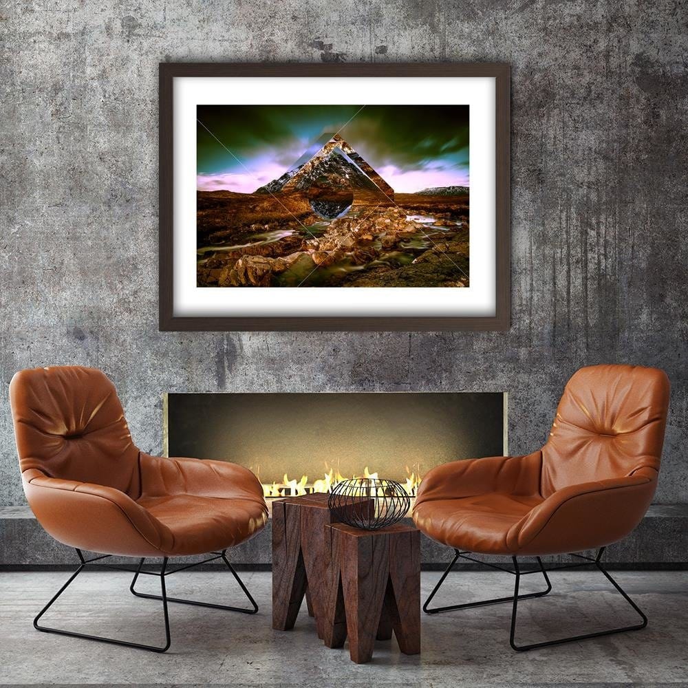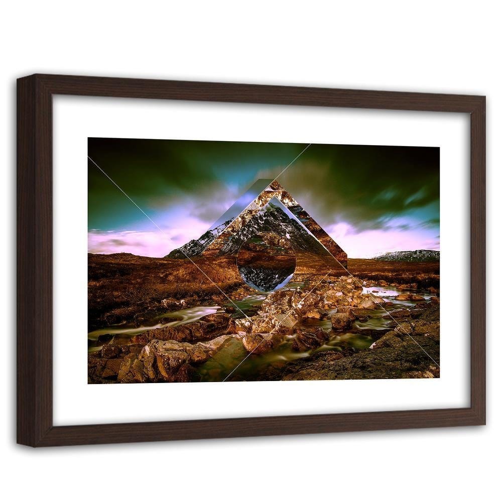 Glezna brūnā rāmī - Mountain Landscape With Geometric Shapes 2