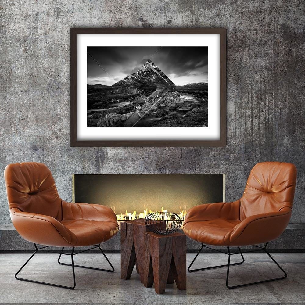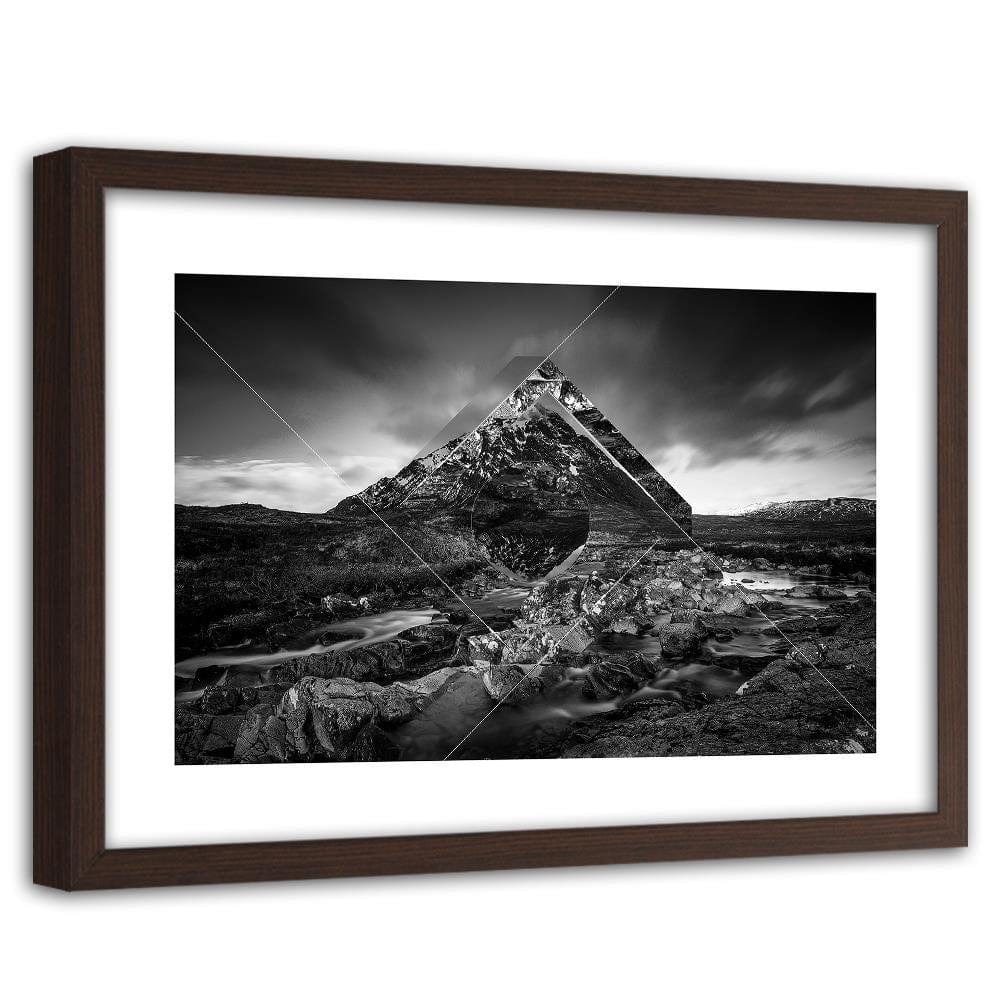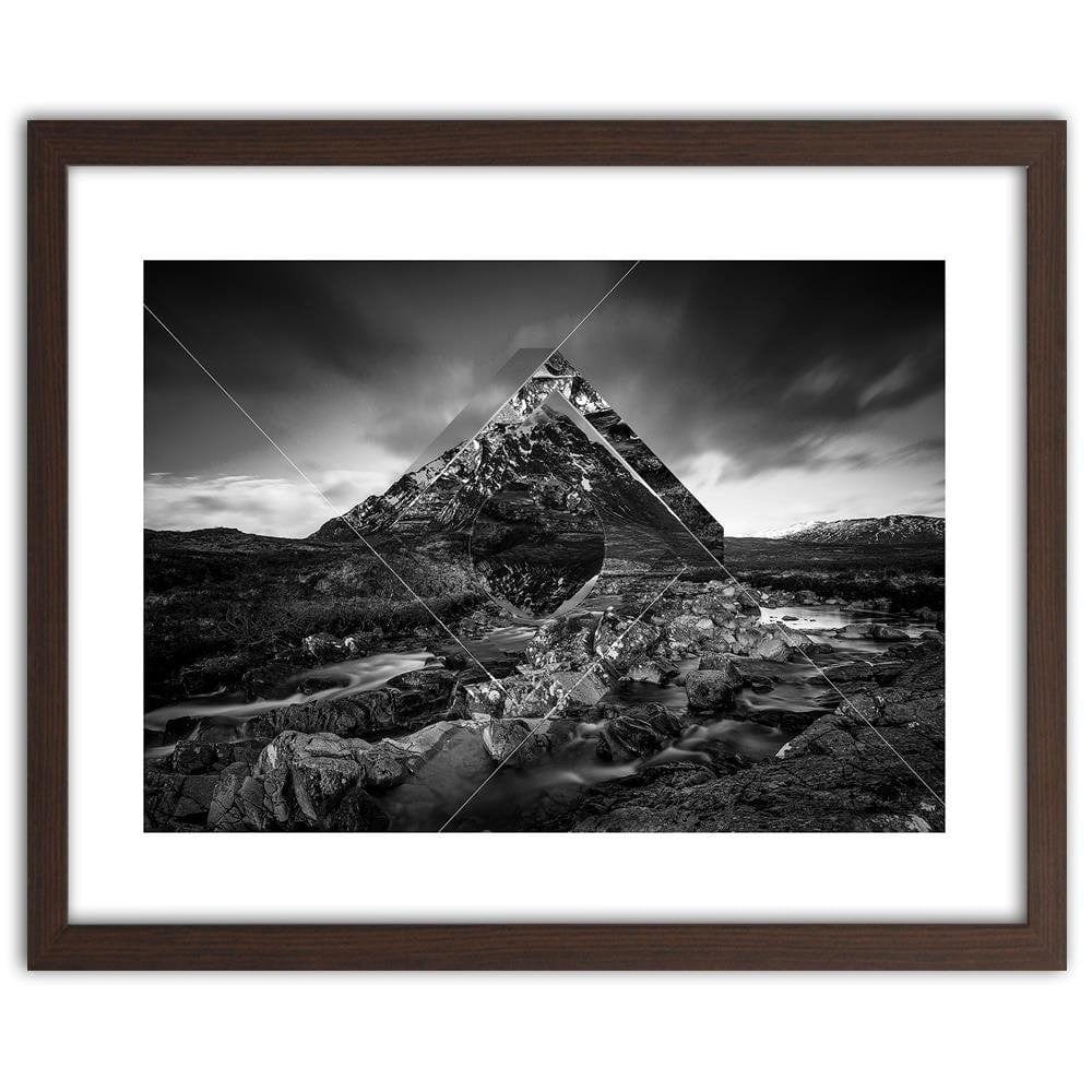Glezna brūnā rāmī - Mountain Landscape With Geometric Shapes 3