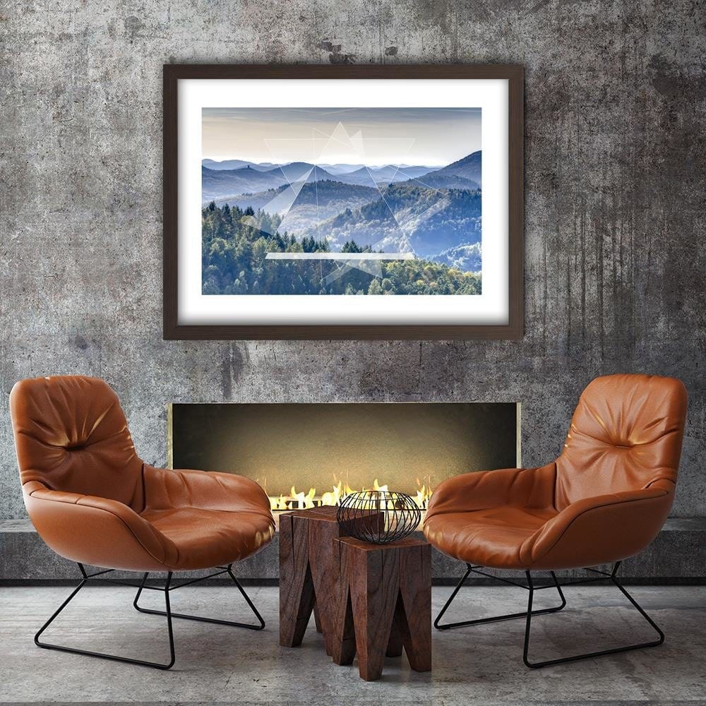 Glezna brūnā rāmī - Mountain Tree And Geometry 1