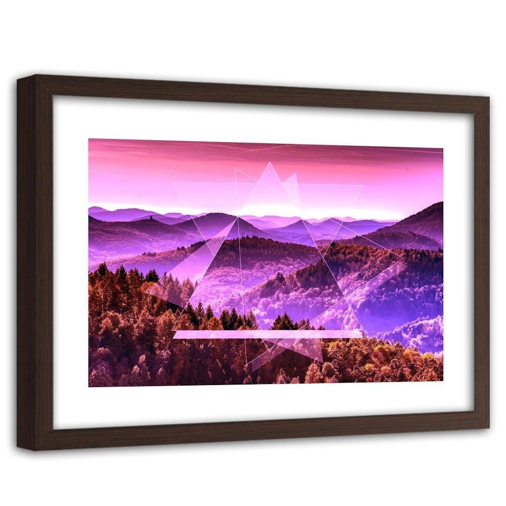 Glezna brūnā rāmī - Mountain Tree And Geometry 2