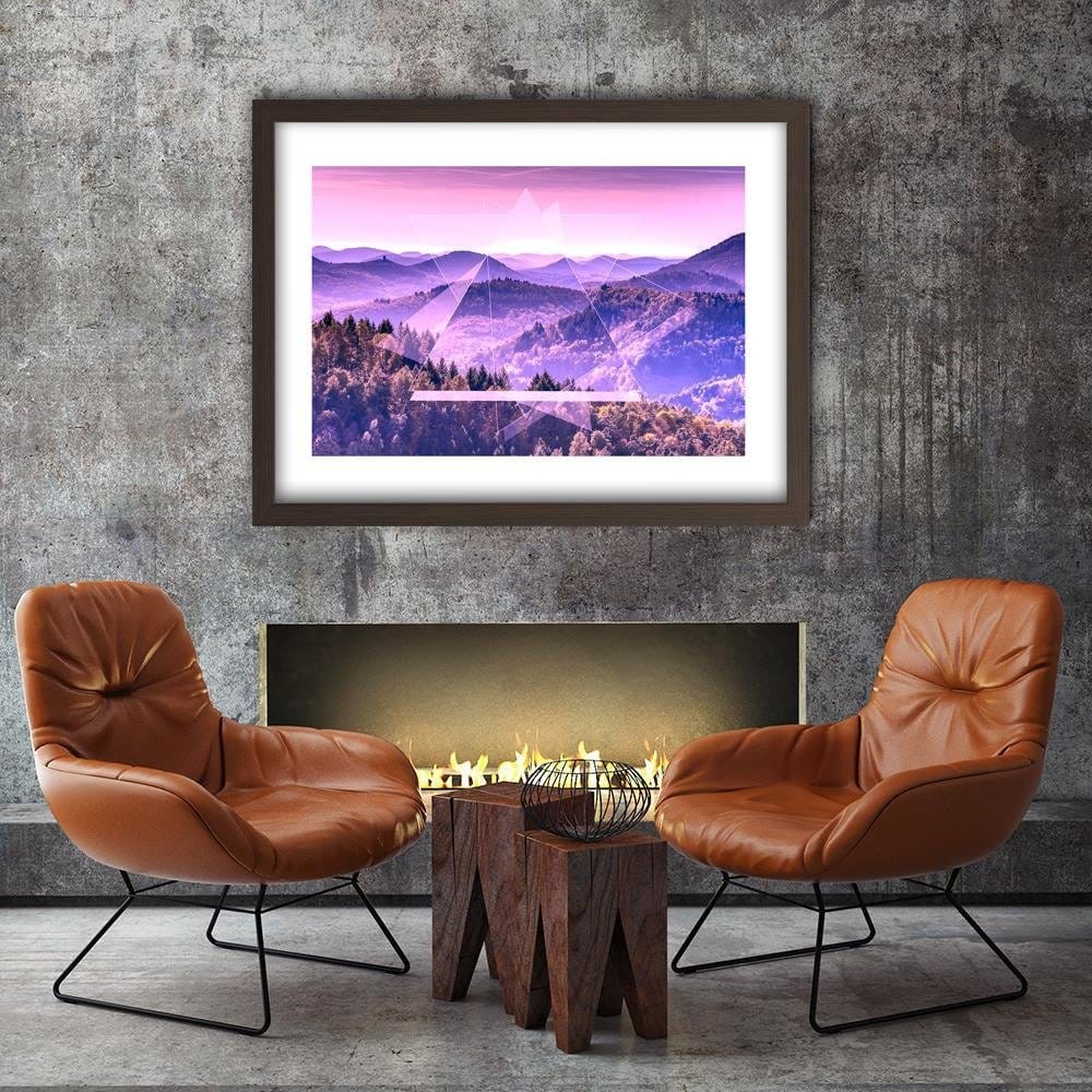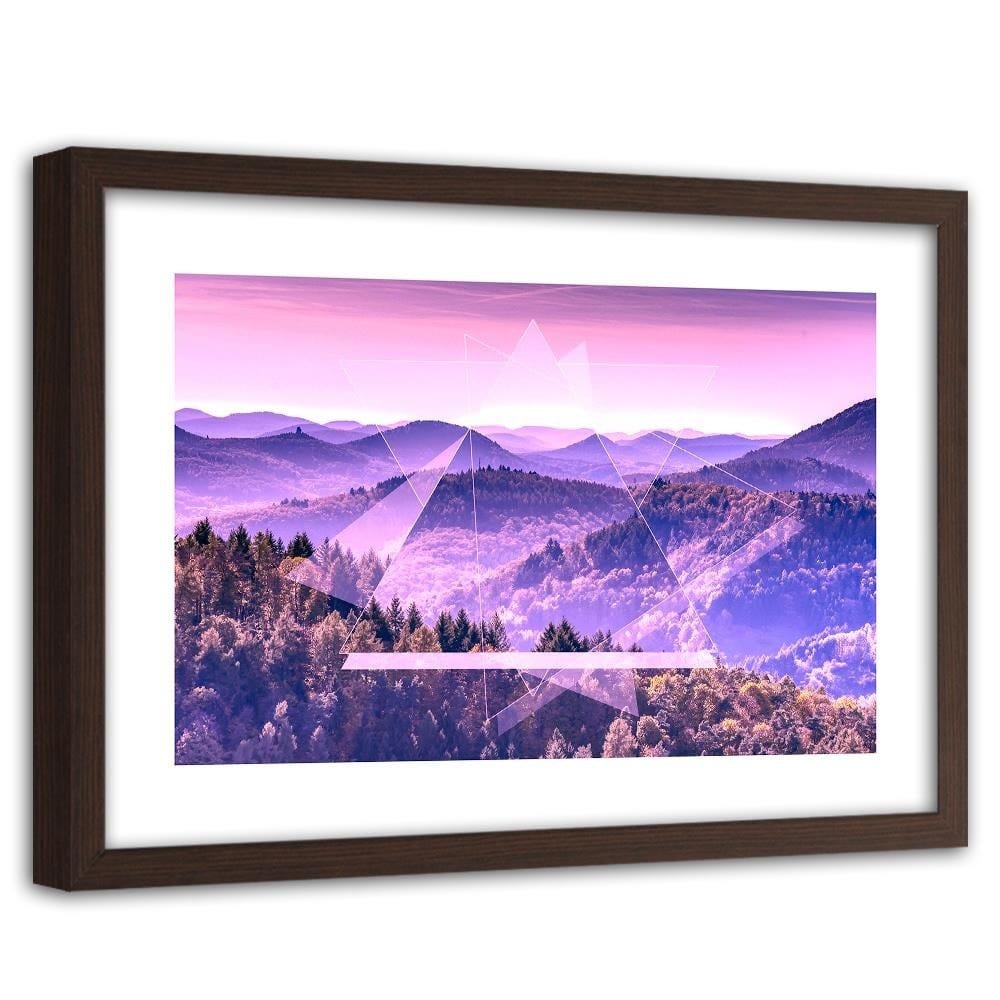 Glezna brūnā rāmī - Mountain Tree And Geometry 3