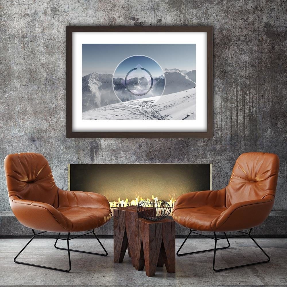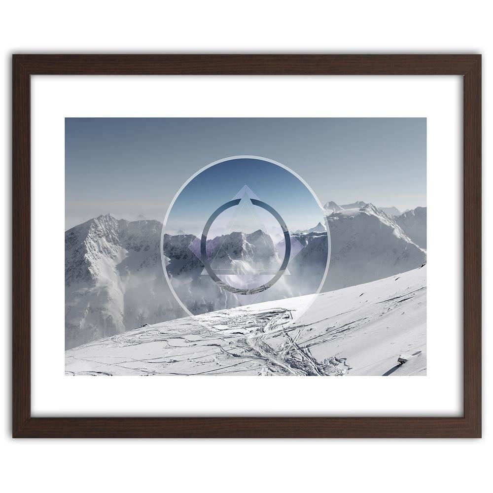 Glezna brūnā rāmī - Mountains Covered With Snow With A Figure Of 1