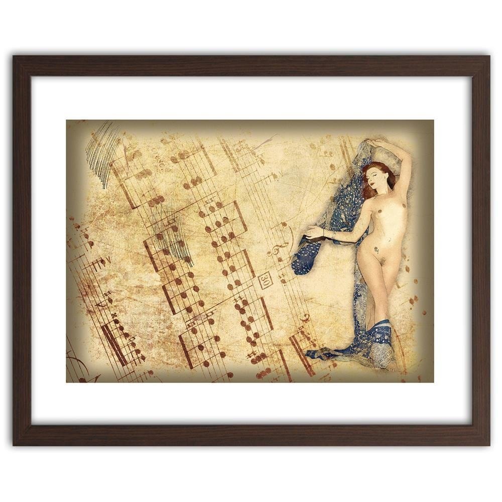 Glezna brūnā rāmī - Naked Woman With Headscarf