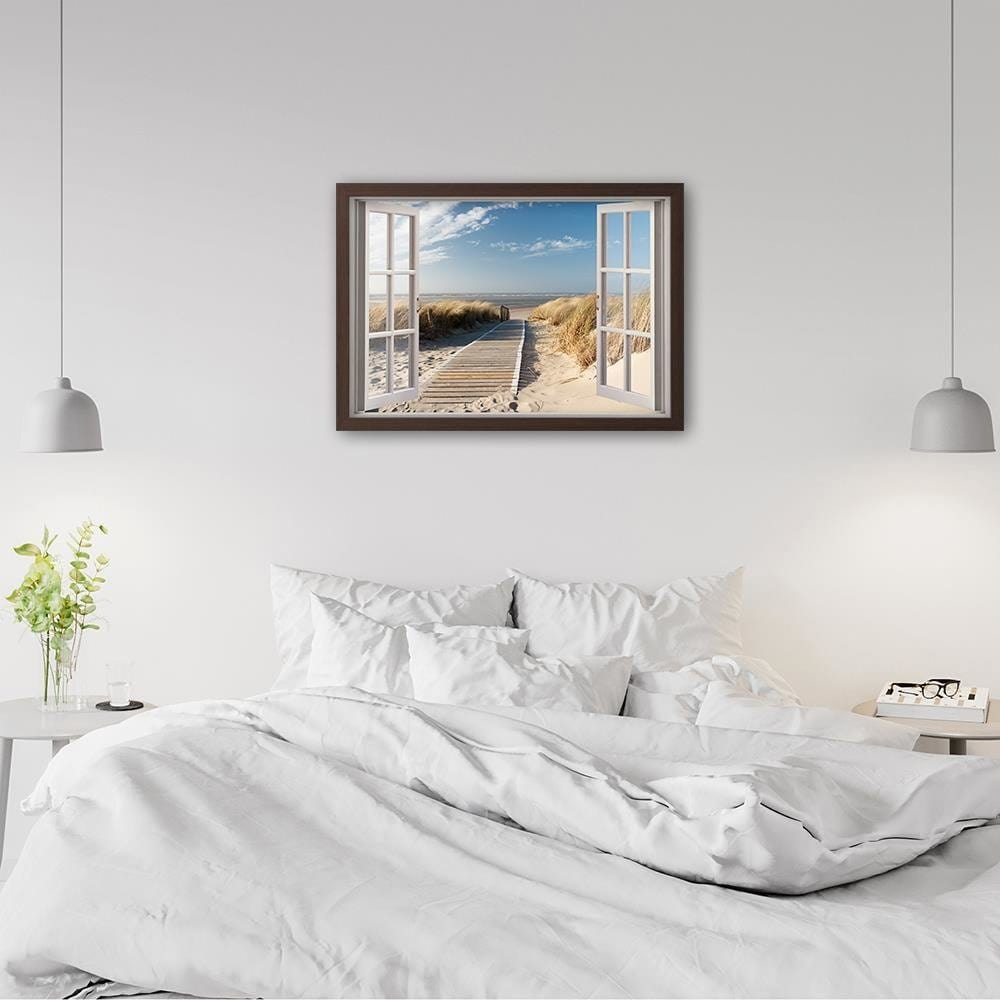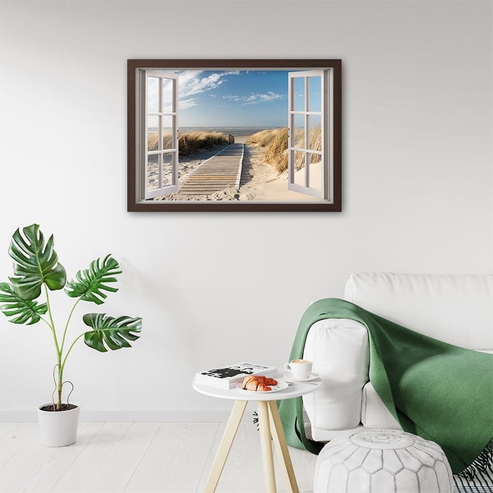 Glezna brūnā rāmī - Opened Window To Way To The Beach