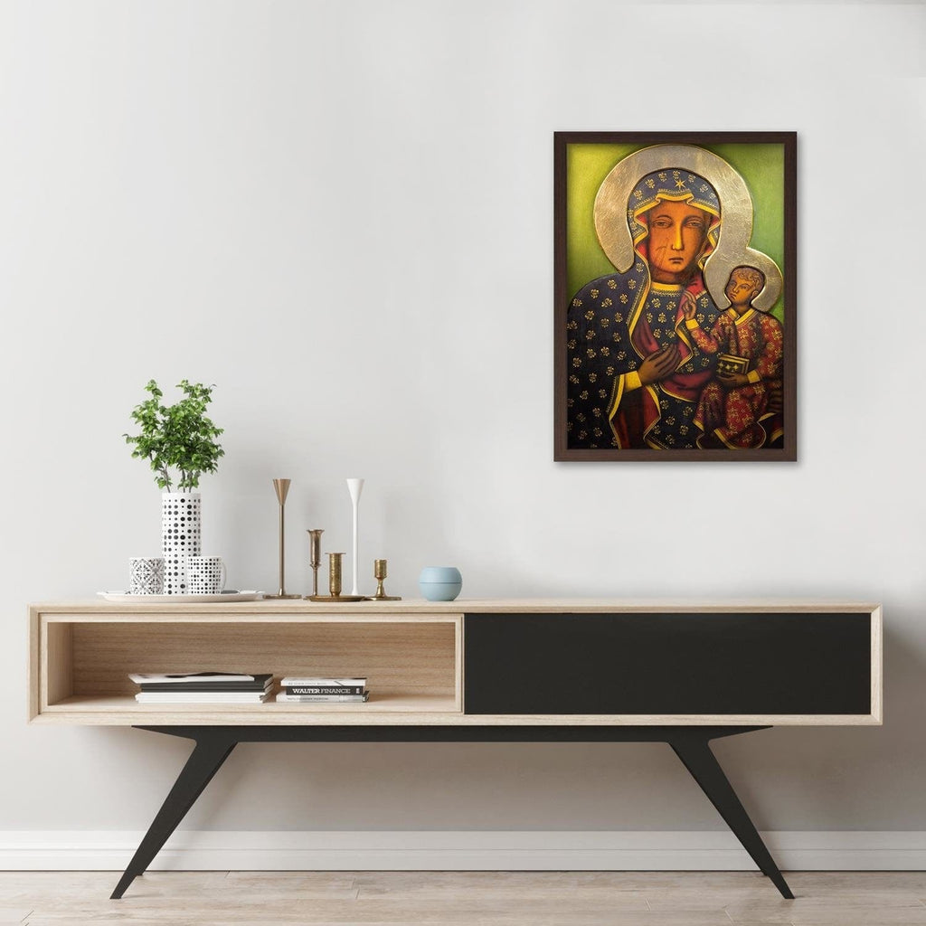 Dekoratīvs attēls ir ierāmēts 2cm plata MDF rāmī. Bez stikla vai organiskā stikla pārklājuma.
