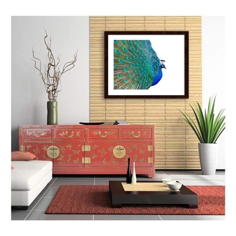 Glezna brūnā rāmī - Peacock with a tail spread out