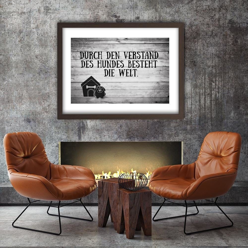 Glezna brūnā rāmī - Quote Dog In Front Of Doghouse