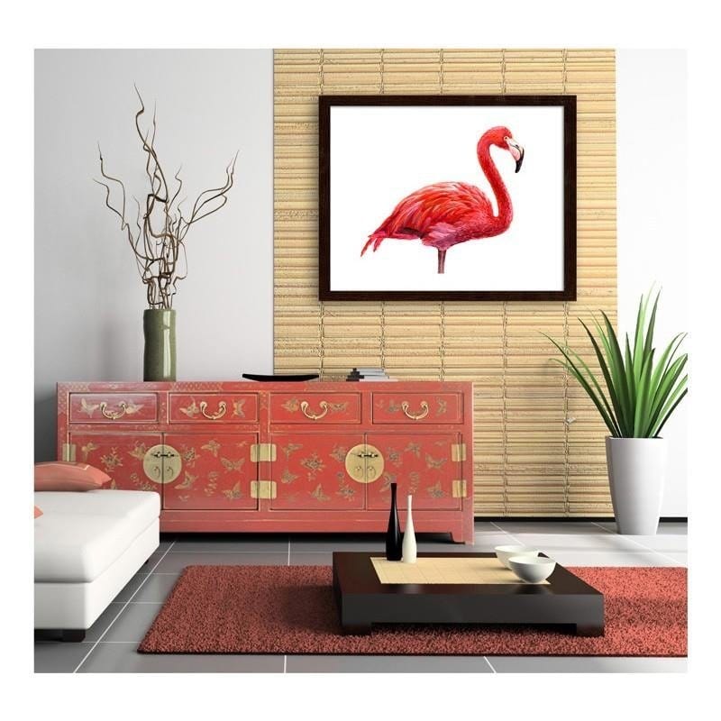 Glezna brūnā rāmī - Realistic flamingo illustration
