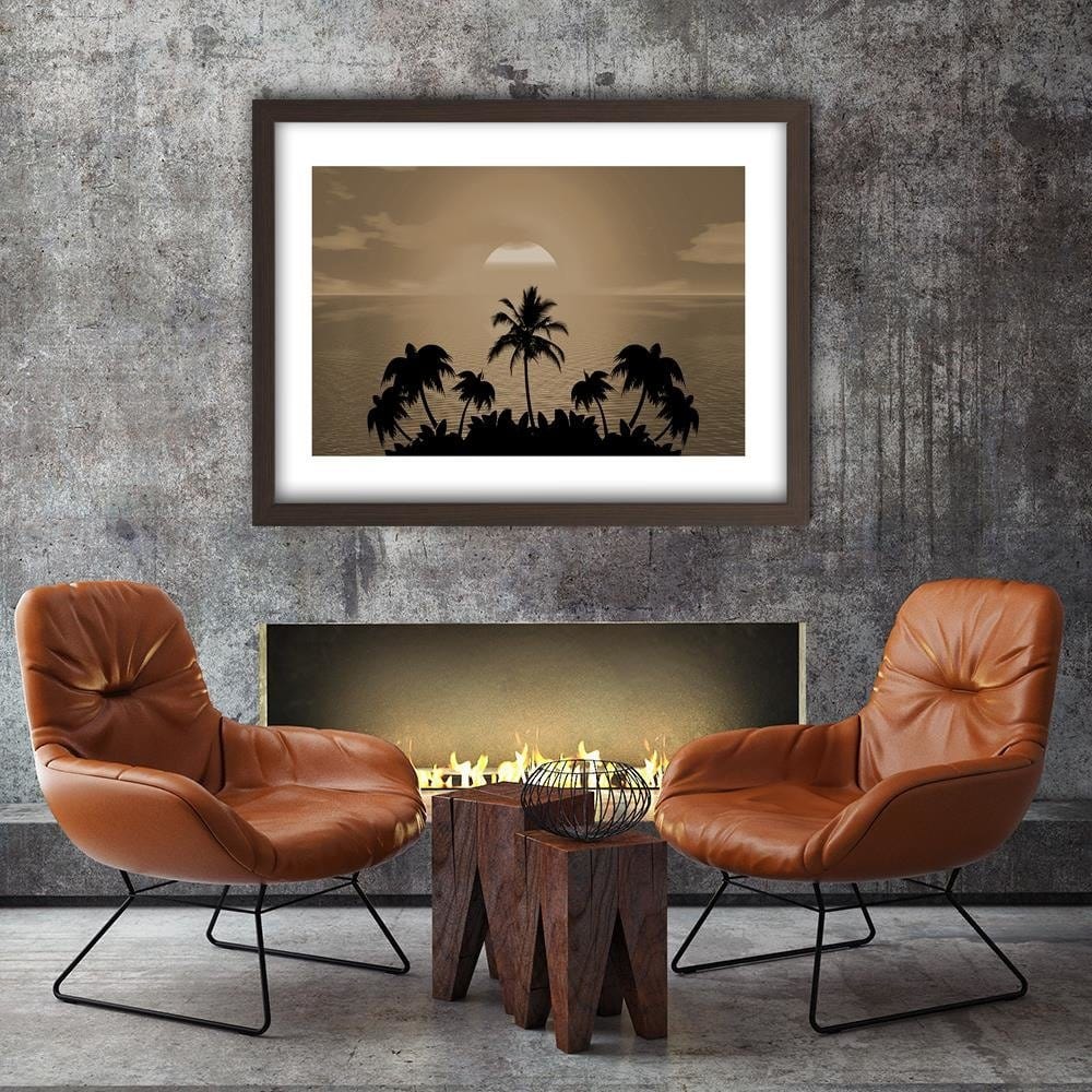 Glezna brūnā rāmī - Sunset With Palms 1
