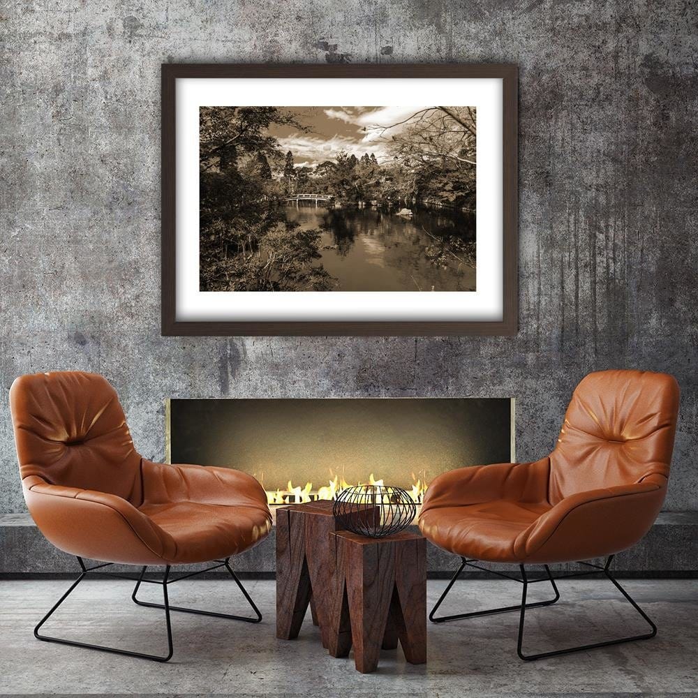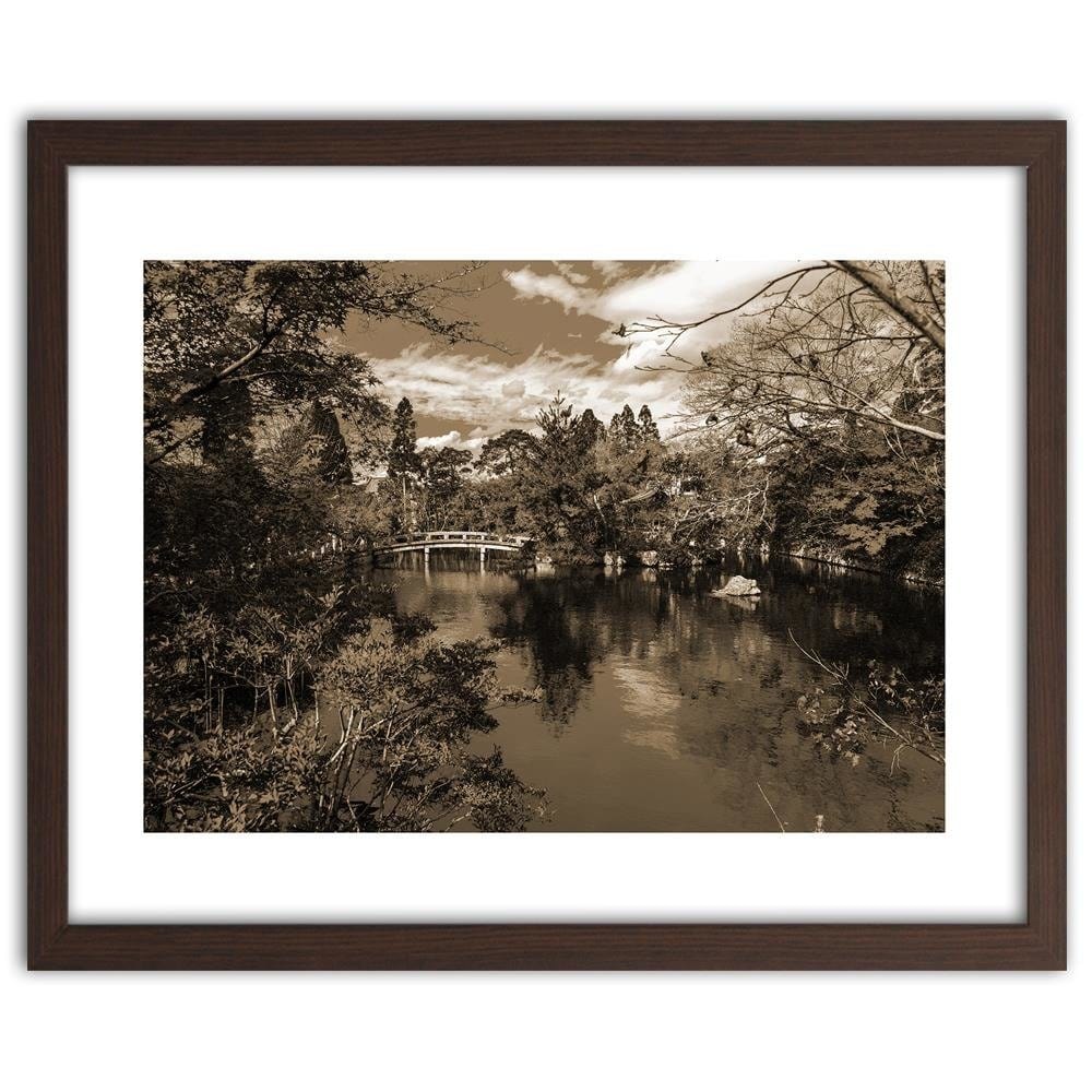 Glezna brūnā rāmī - The Bridge Over The River In The Park 1