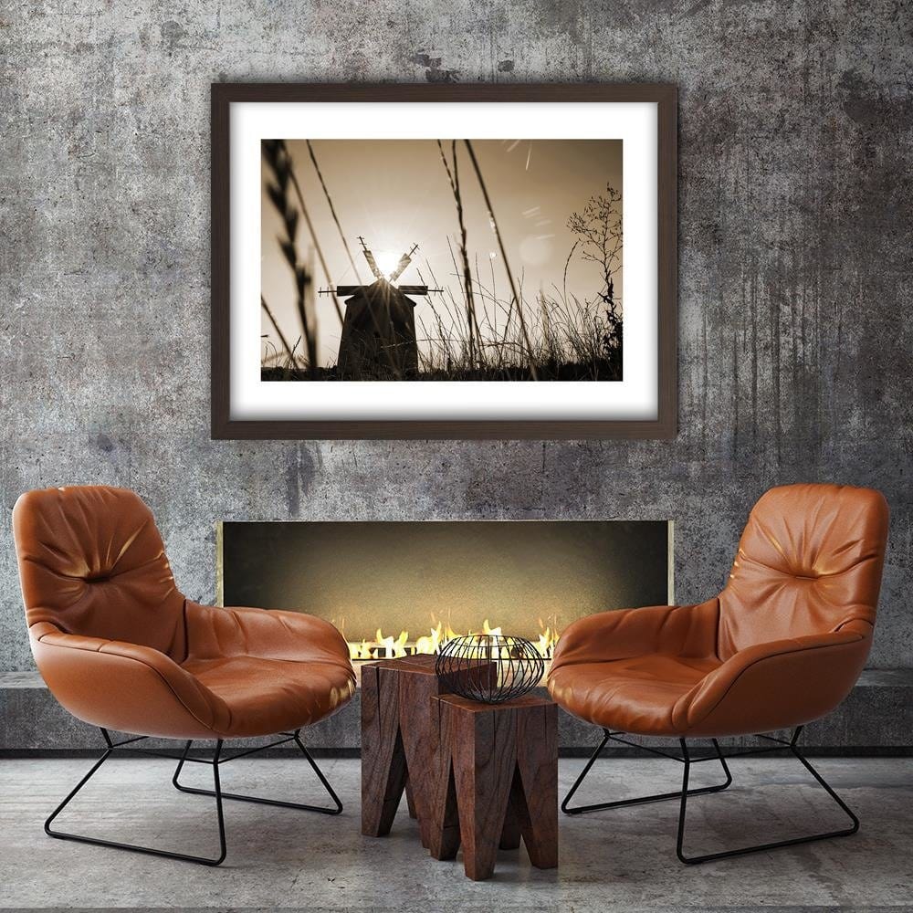 Glezna brūnā rāmī - Windmill At Sunset 1
