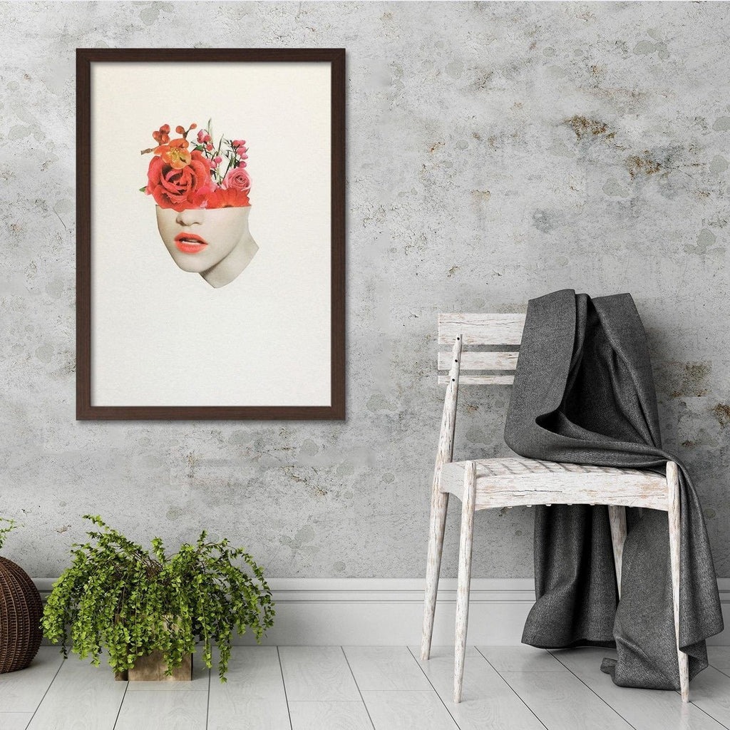 Glezna brūnā rāmī - Woman Face With Red Roses
