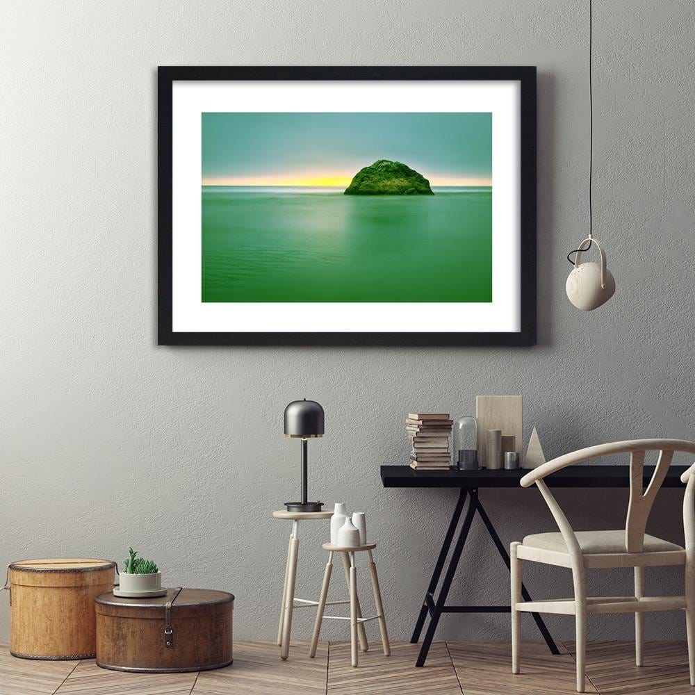 Glezna melnā rāmī - A Rock In The Sea At Dusk 3