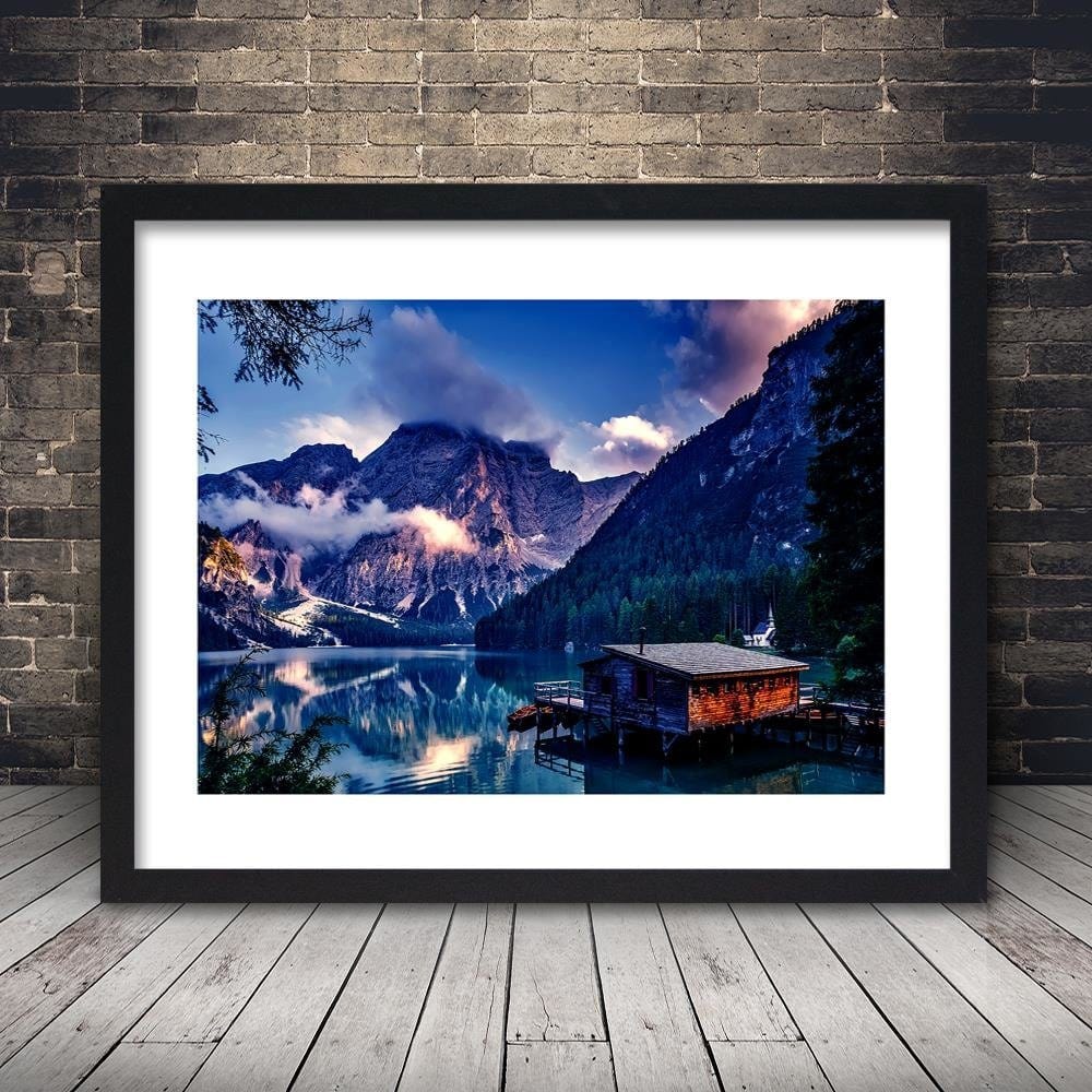 Glezna melnā rāmī - Beautiful Mountain Lake