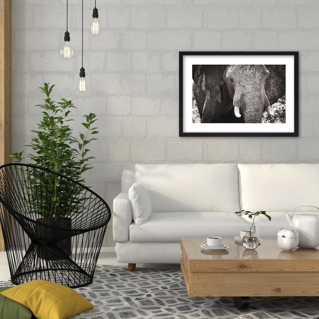 Glezna melnā rāmī - Black-And-White Elephant