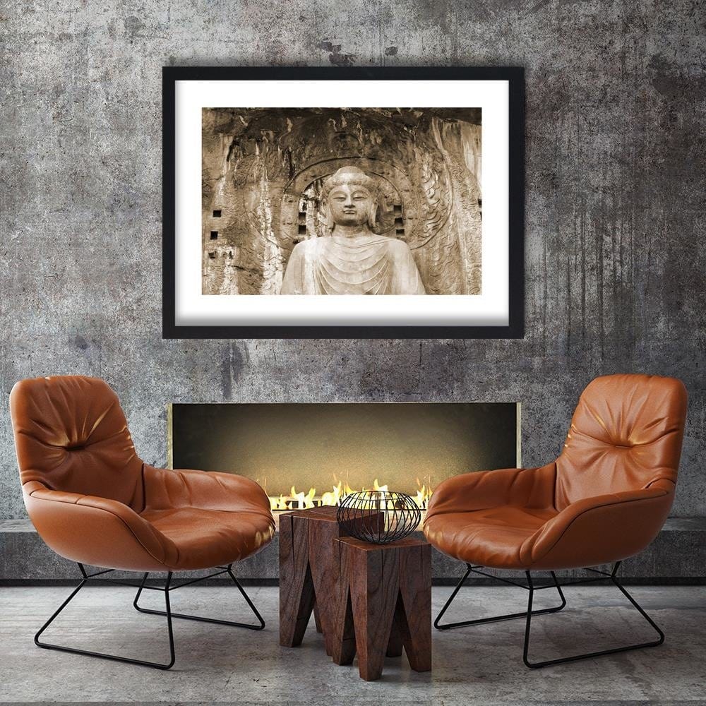 Glezna melnā rāmī - Buddha In Front Of The Walls Of The Temple