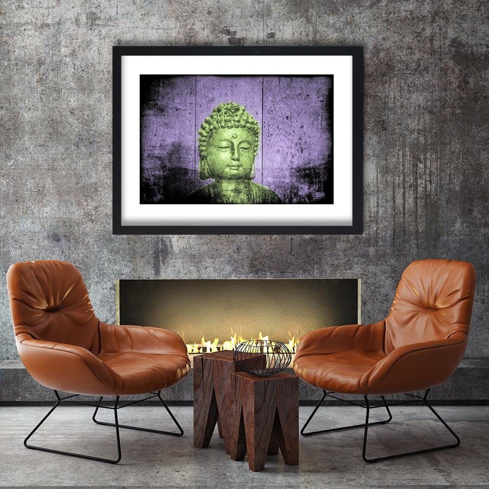 Glezna melnā rāmī - Buddha On Wooden Background