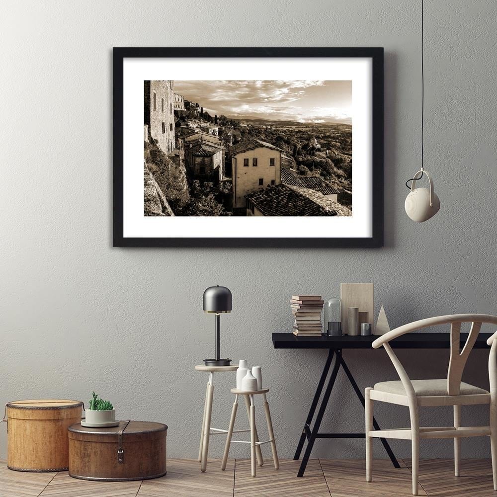Glezna melnā rāmī - Buildings In Tuscany 1