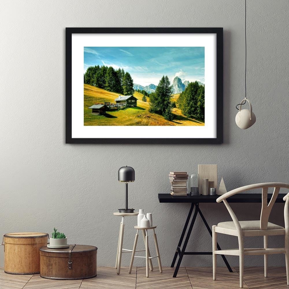 Glezna melnā rāmī - Cabin In The Mountains 4