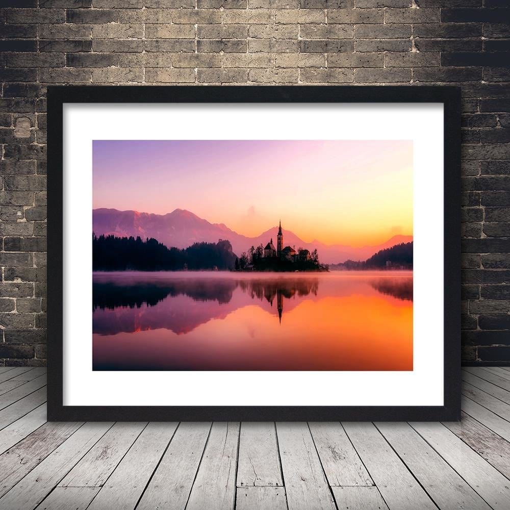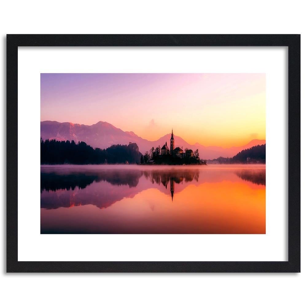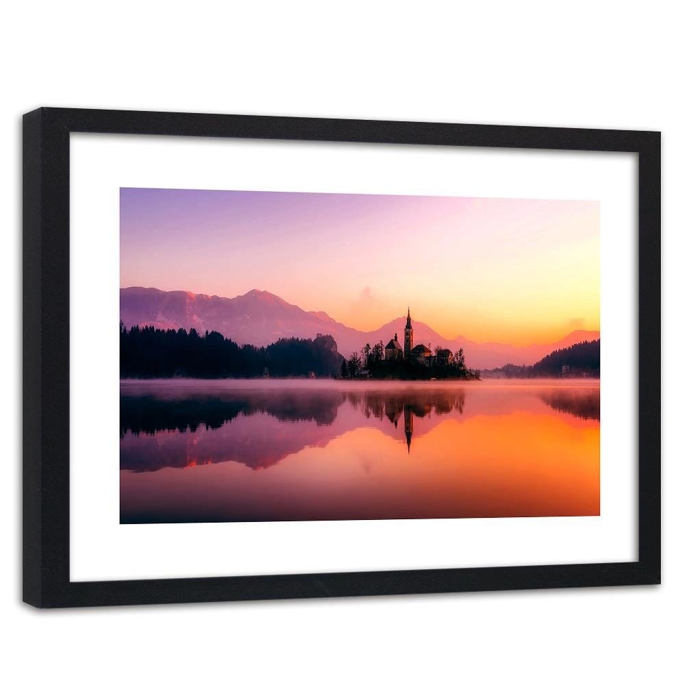Glezna melnā rāmī - Castle On A Mountain Lake