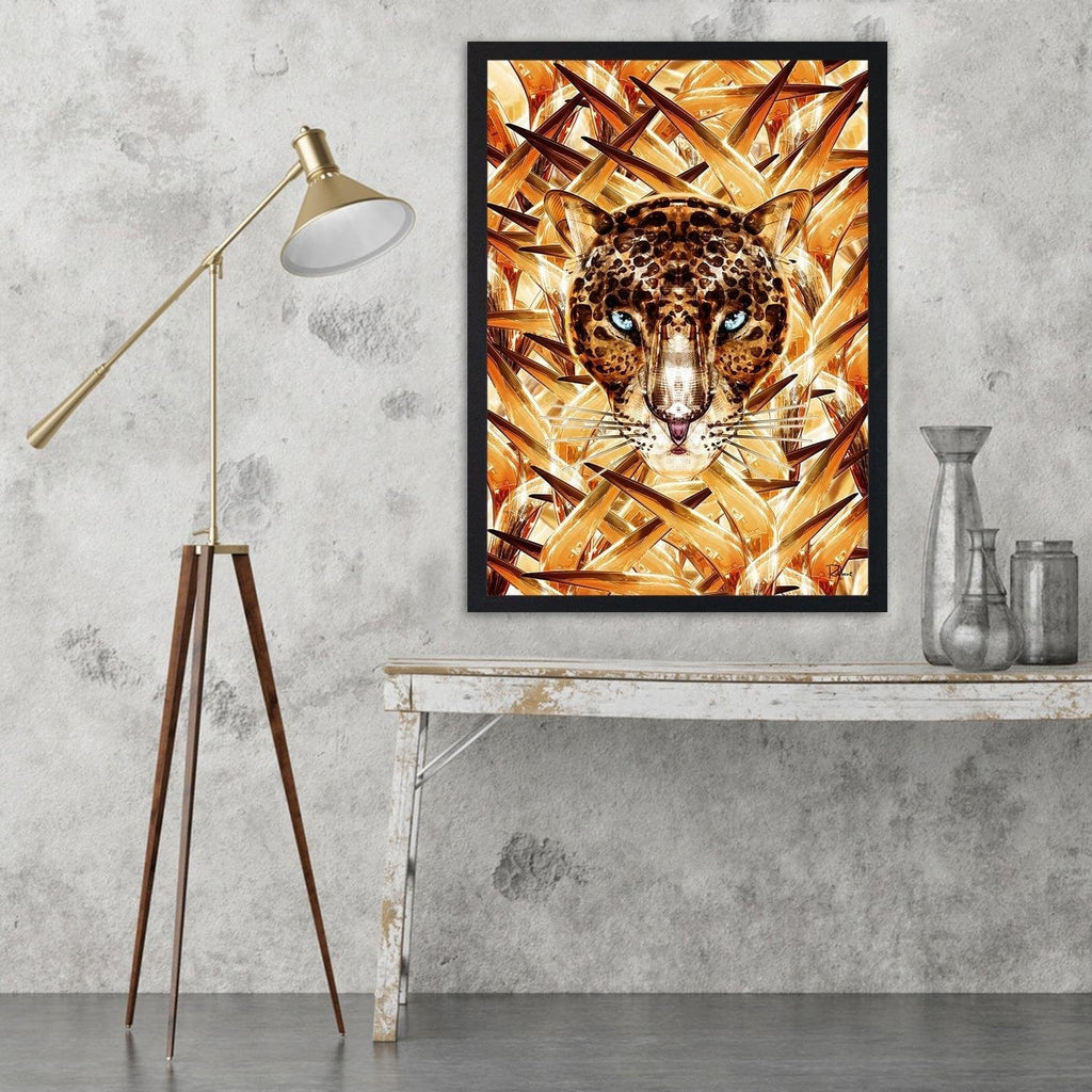 Glezna melnā rāmī - Cheetah Image Animal Print Orange