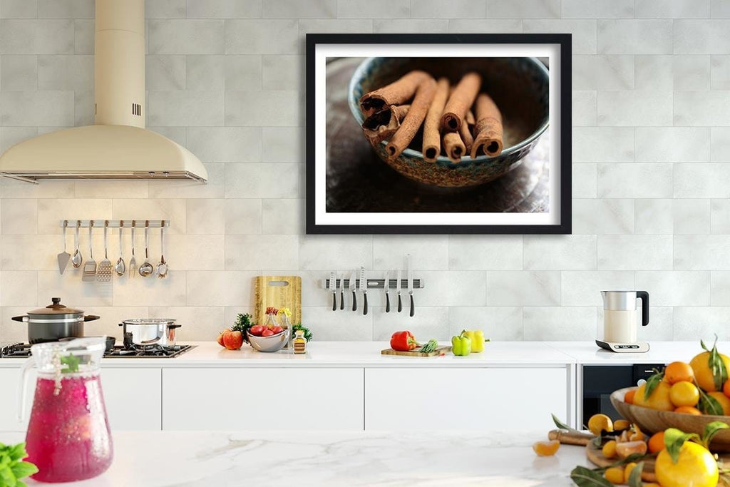 Glezna melnā rāmī - Cinnamon Sticks In A Bowl