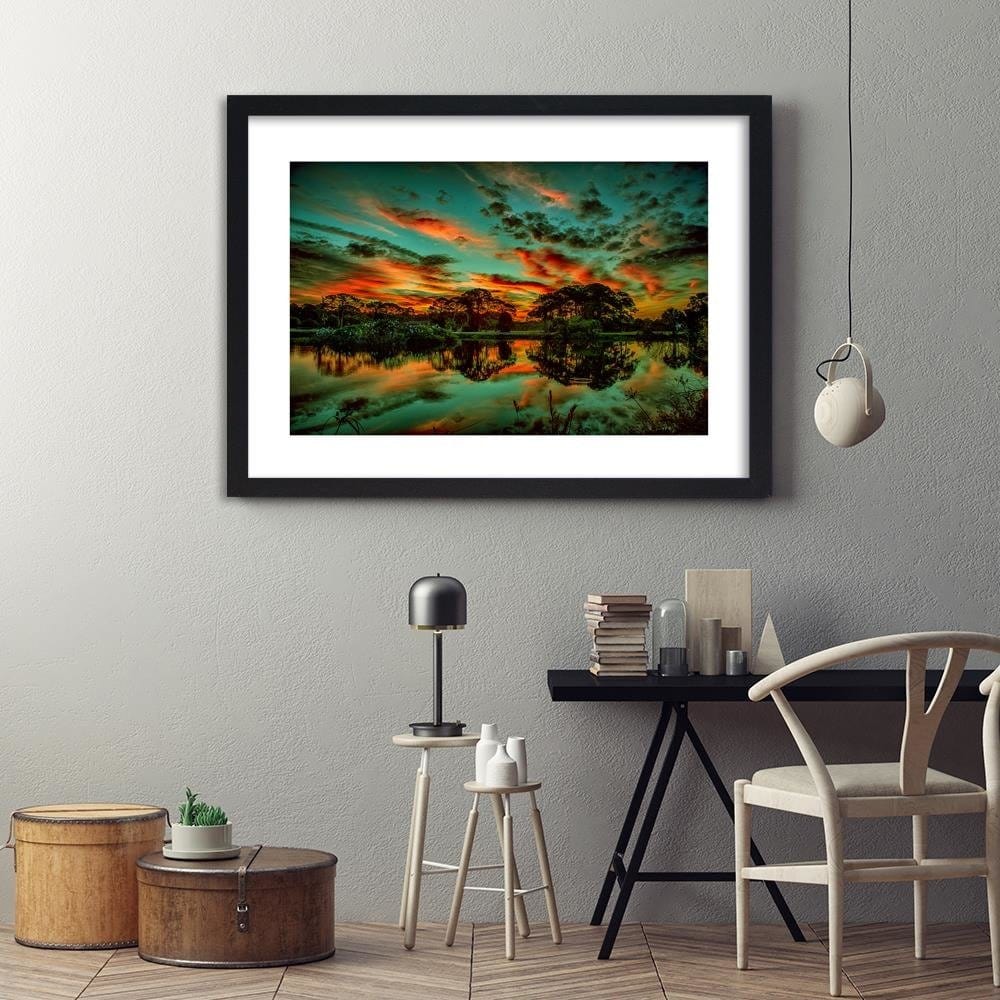Glezna melnā rāmī - Clouds Over The Lake 4