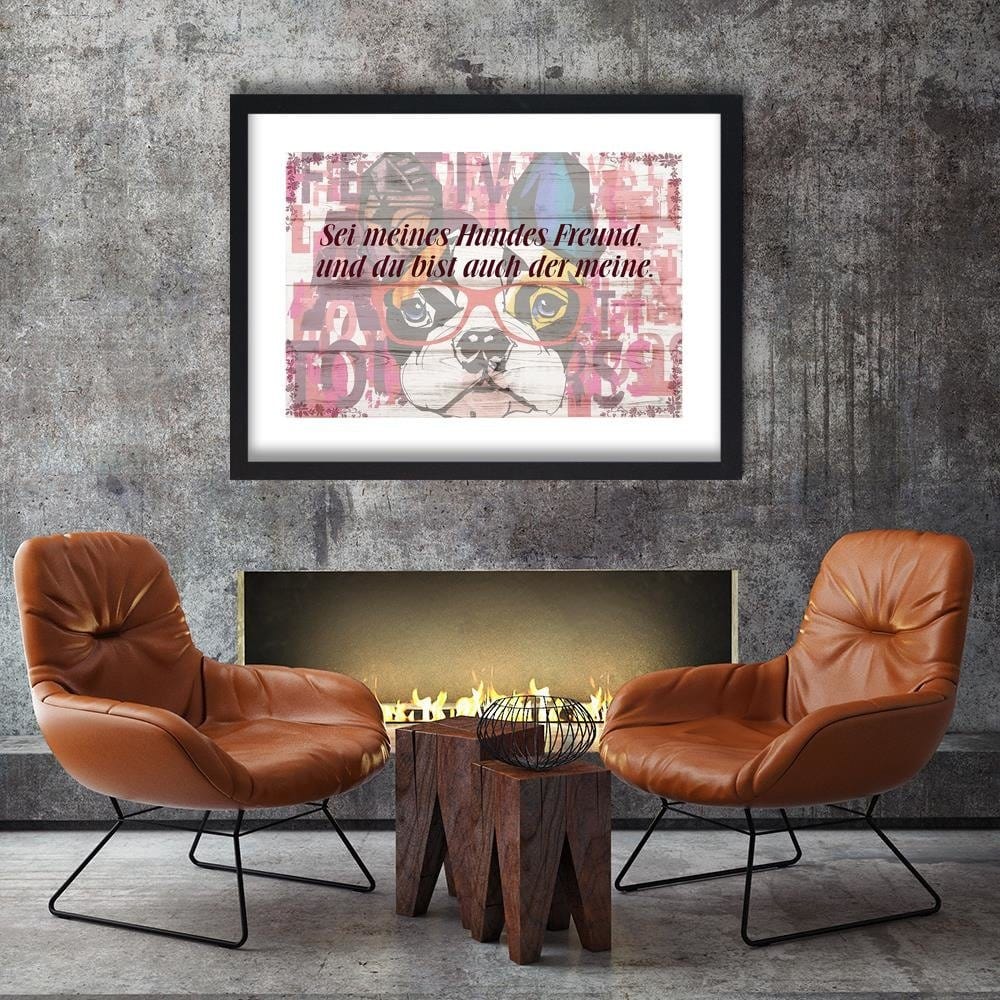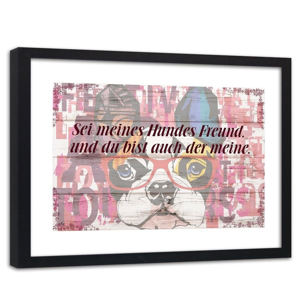 Glezna melnā rāmī - Colored Dog With Glasses