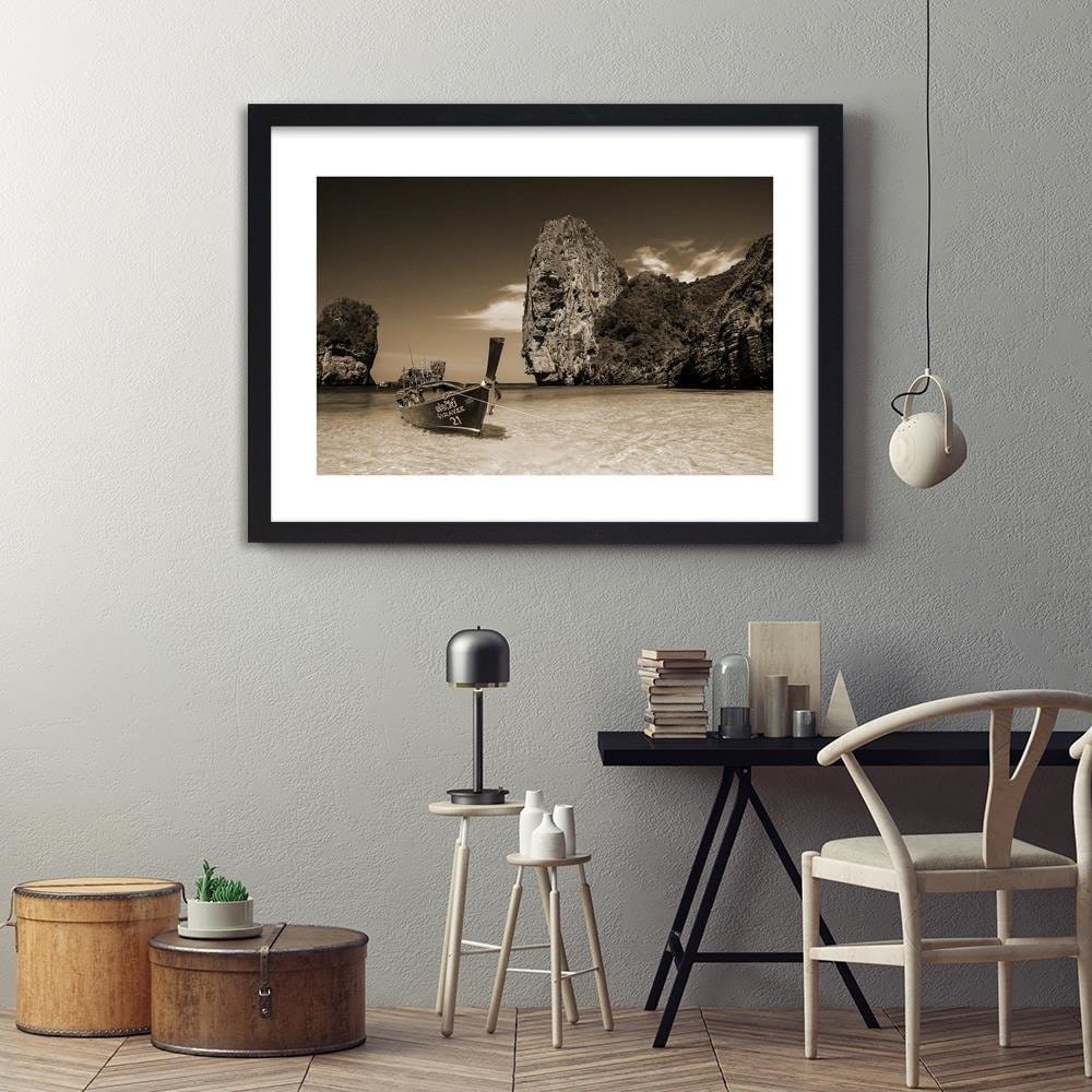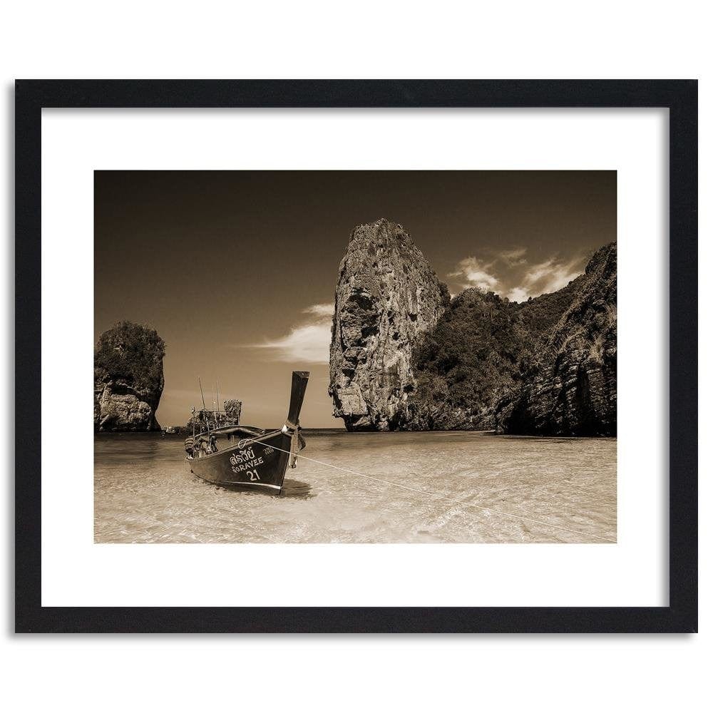 Glezna melnā rāmī - Colorful Boat On The Sea Shore 1