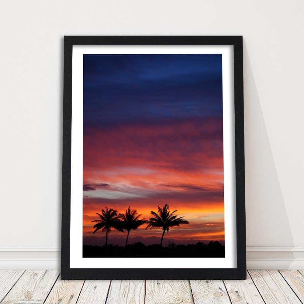 Glezna melnā rāmī - Colorful Sky And Palm Trees