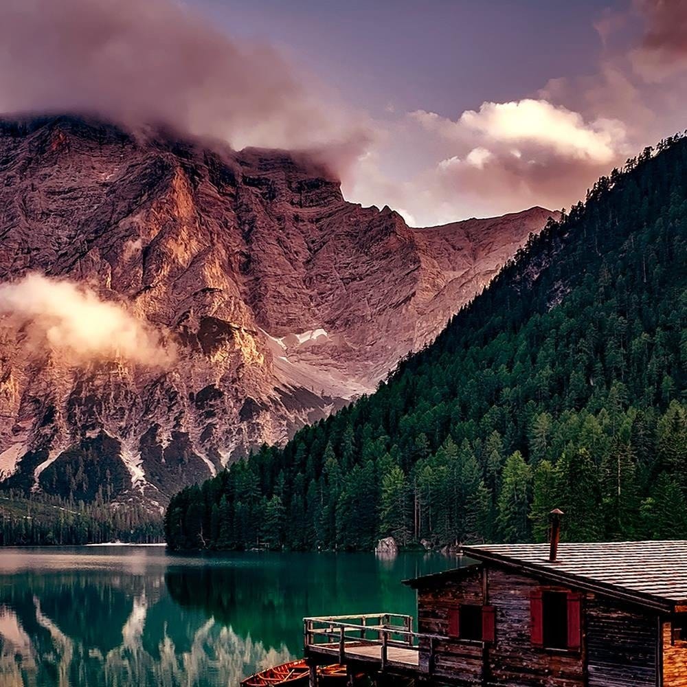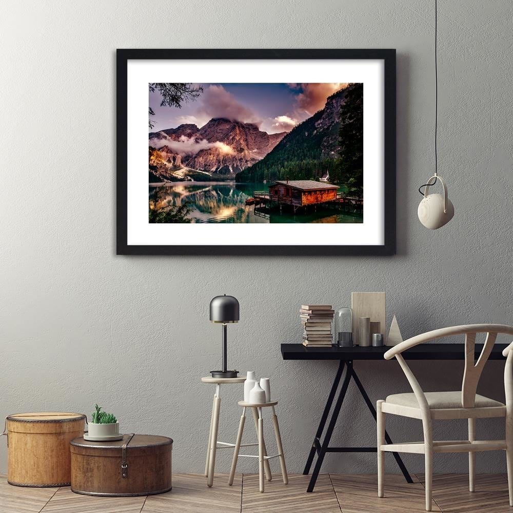 Glezna melnā rāmī - Cottage Alpine Lake 4