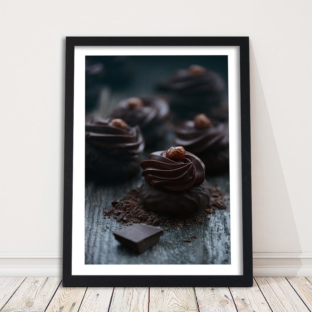 Glezna melnā rāmī - Dessert With Dark Chocolate